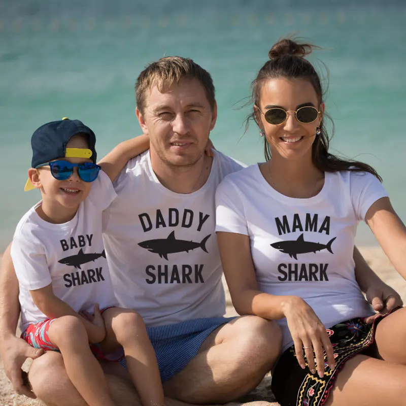 Рубашка с принтом Мама и малыш, костюм с принтом акулы, сочетающаяся одежда для отца, сына, мамы и я, пуловер с коротким рукавом, топы