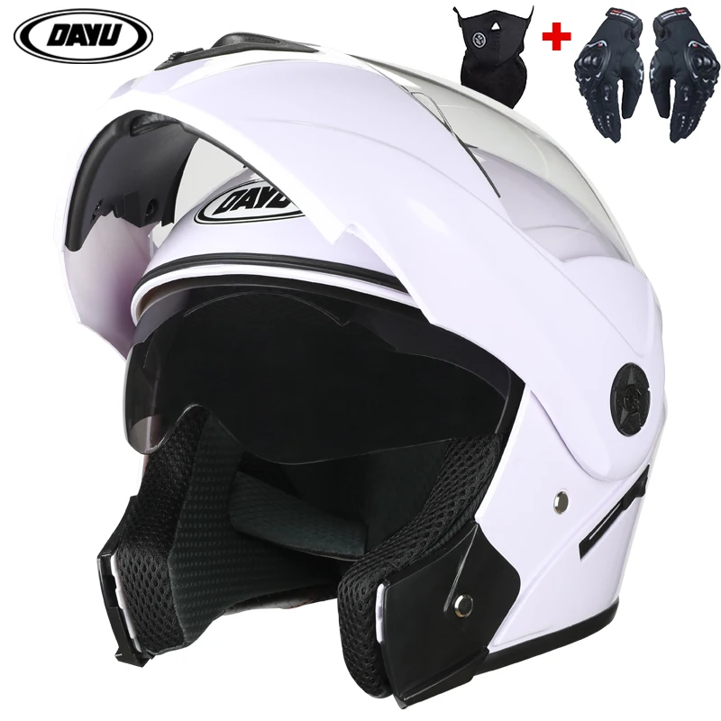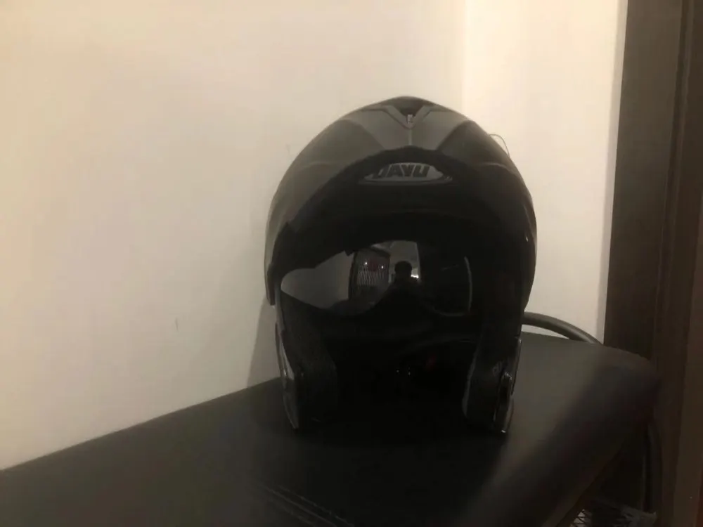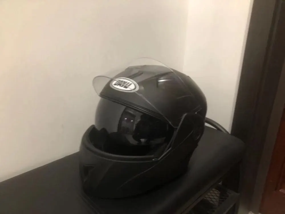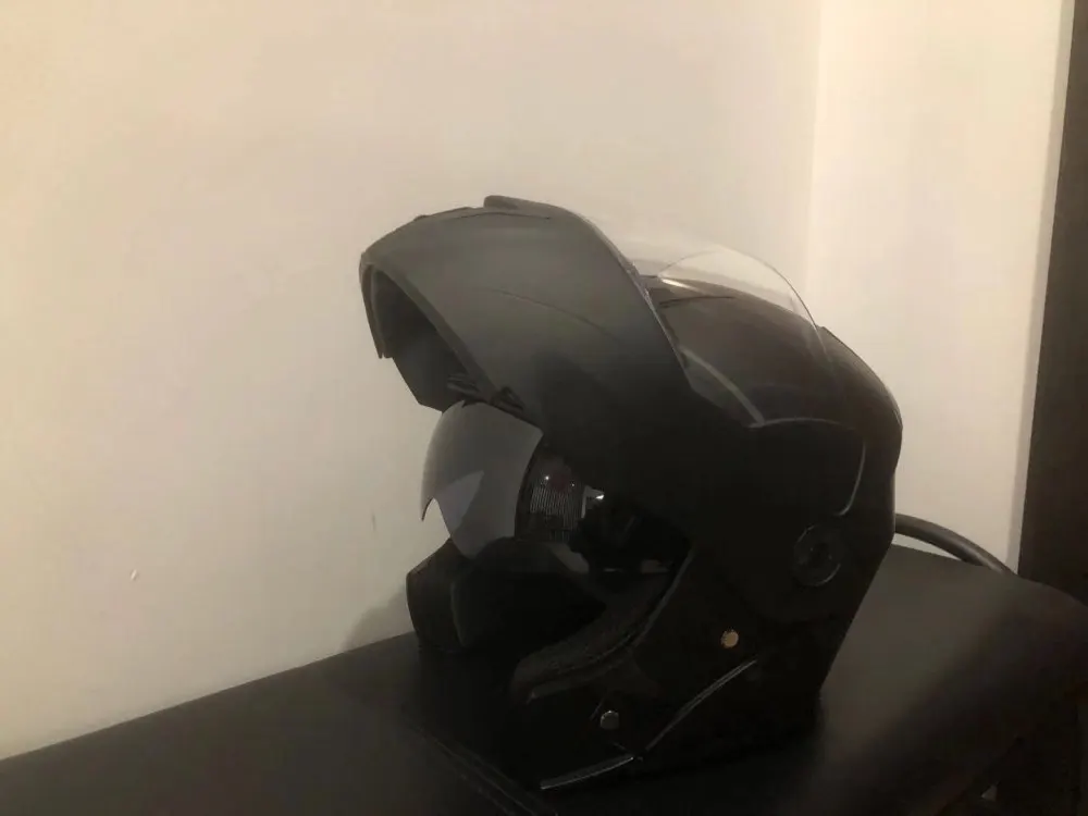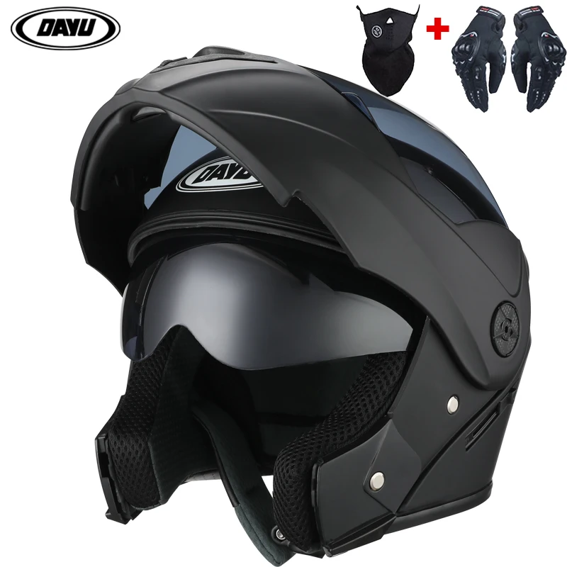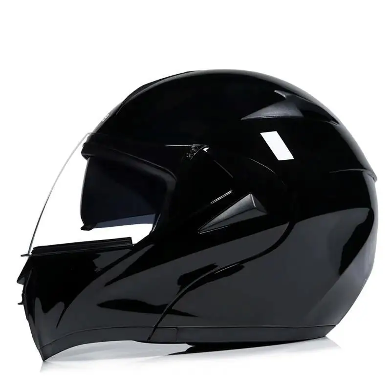 Шлем мотоциклетный, черного цвета, с двумя линзами