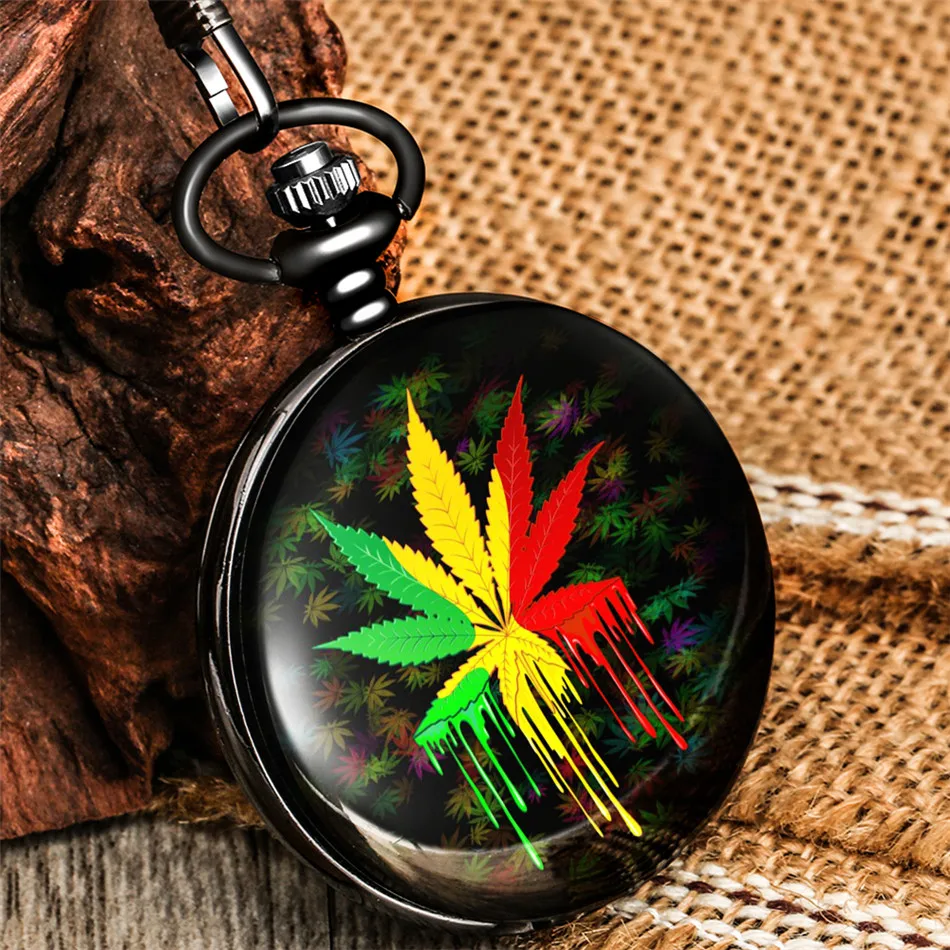 Цветной принт "Кленовый лист" дизайн кварцевые карманные часы винтажные гладкий черный мужской кулон часы арабскими цифрами Дисплей циферблат