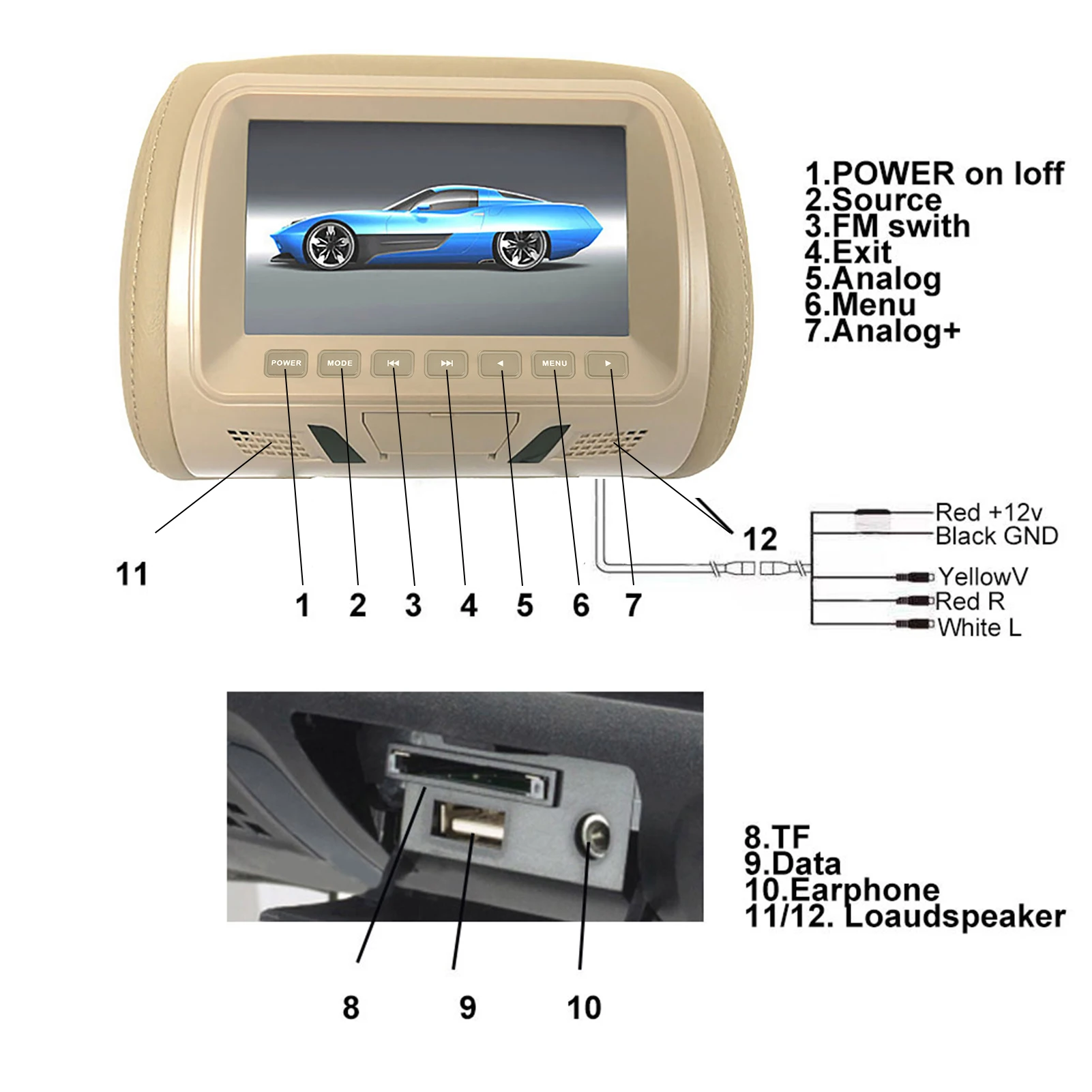 7-дюймовый автомобильный ЖК-дисплей 12 В постоянного тока, HD монитор на подголовник, развлечение на заднем сиденье с пультом дистанционного управления Описание: Этот монитор подголовника имеет многофункциональное меню на английском языке, порт вывода наушников и может подключаться к навигационному DVD. С функцией беспроводного пульта дистанционного управления, он может управляться дистанционным управлением легко и быстро. Изготовлен из высококачественного материала, он прочный и износостойкий. Длина данного изделия составляет 273 мм, ширина-180 мм, высота-124 мм. Он универсален для автомобилей 12 В постоянного тока, расстояние между двумя полюсами может быть отрегулировано от 13 до 18 см, что подходит для установки на все модели. Название товара: монитор подголовника Материал: кожа, ABS Разрешение экрана: цветной 800x480 Размер экрана: 7 дюймов Потребляемая мощность: около 8 Вт Система: Автоматическое преобразование PAL/NTSC Размер: 27,3 см x 18 см x 12,4 см/10,75 дюйма x 7,09 дюйма x 4,88 дюйма Примечания: Из-за разницы в освещении и настройках экрана цвет товара может сильно отличаться от изображений. Замеры сделаны вручную, поэтому возможны незначительные отклонения в размерах. Посылка входит: 1 монитор подголовника 12 X пластиковых втулок 1 пульт дистанционного управления 1 X Руководство пользователя 2 х стальные трубы 1 X Кабель