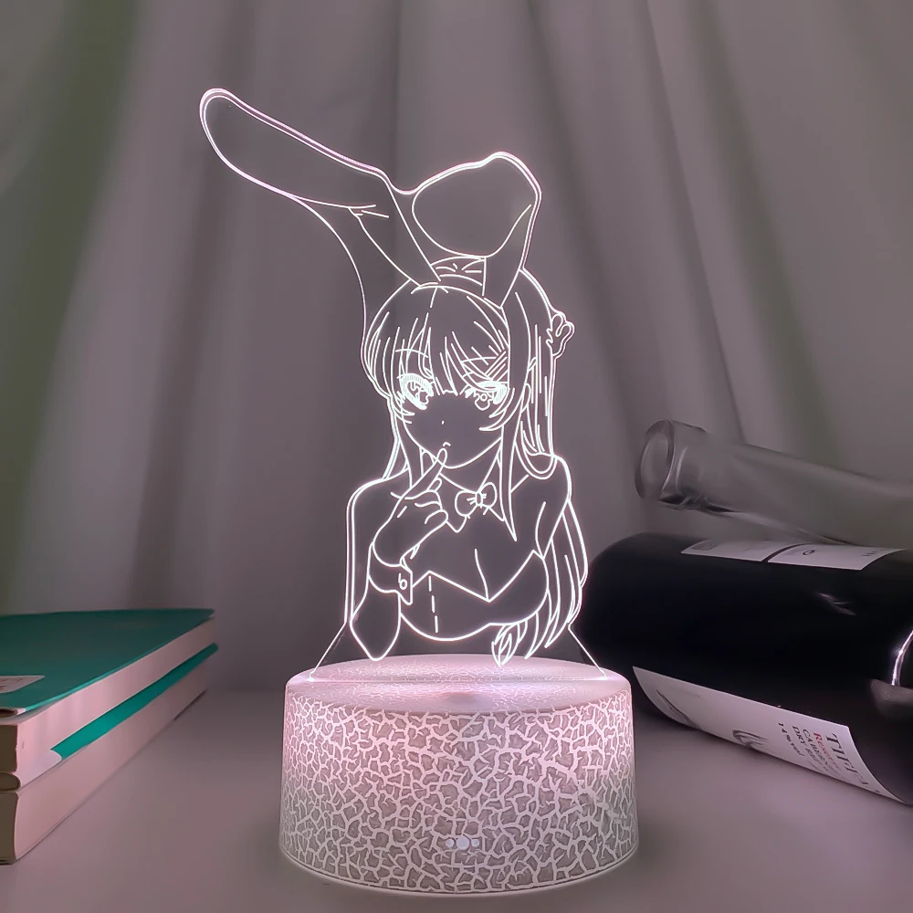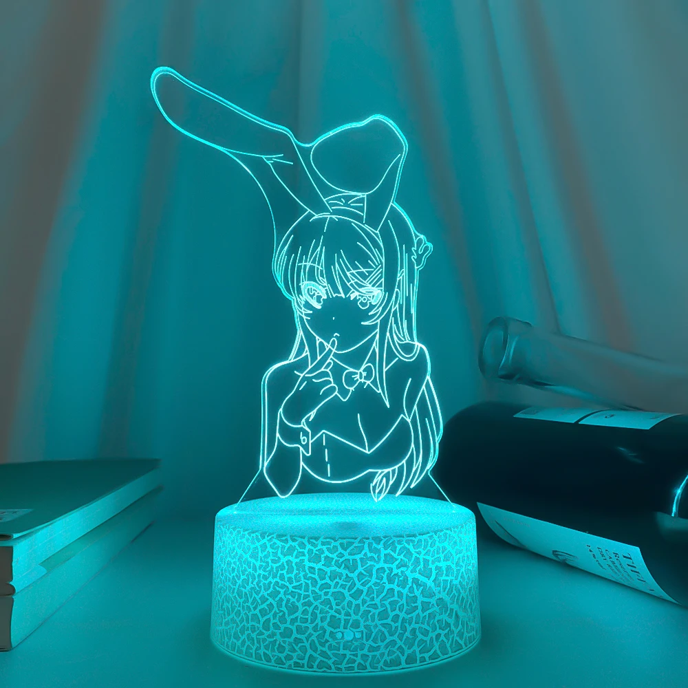 3D иллюзия, светодиодный ночсветильник, лампа, разные цвета, меняющая цвет, лампа, кролик, девочка, SENPAI MAI SAKURAJIMA, милый подарок на Рождество