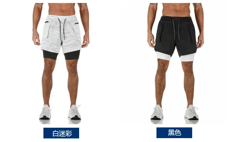 Мужские спортивные шорты 2 в 1, быстросохнущие, с двойным слоем, для бега, спортзала, новинка 2021