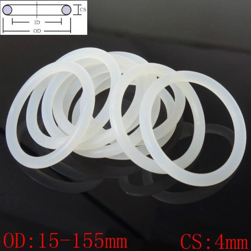 Белая Пищевая силиконовая резина уплотнительное кольцо уплотнения шайба поперечное сечение 4 мм OD 15-155 мм