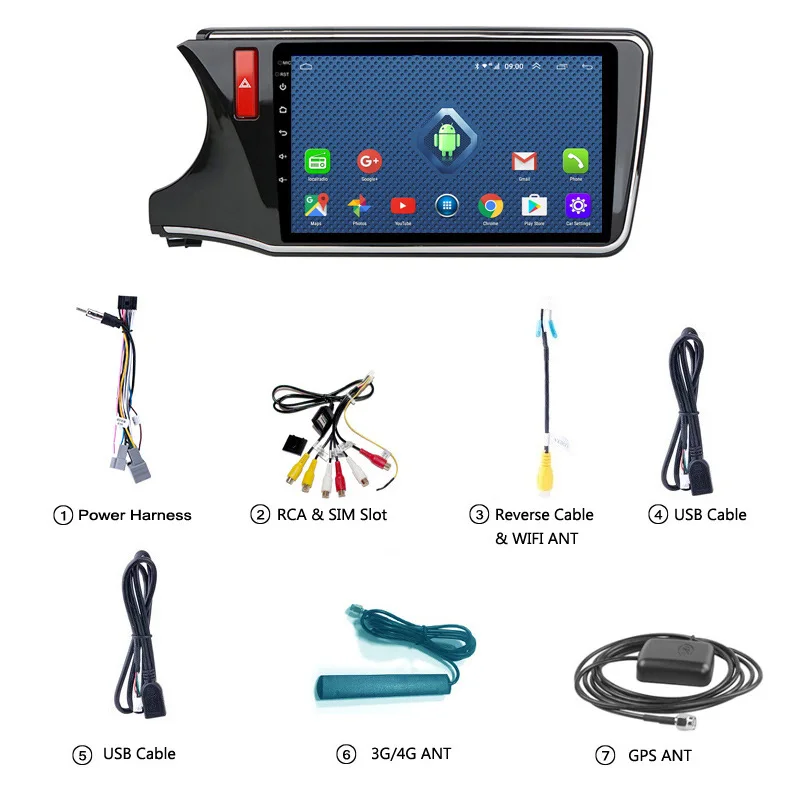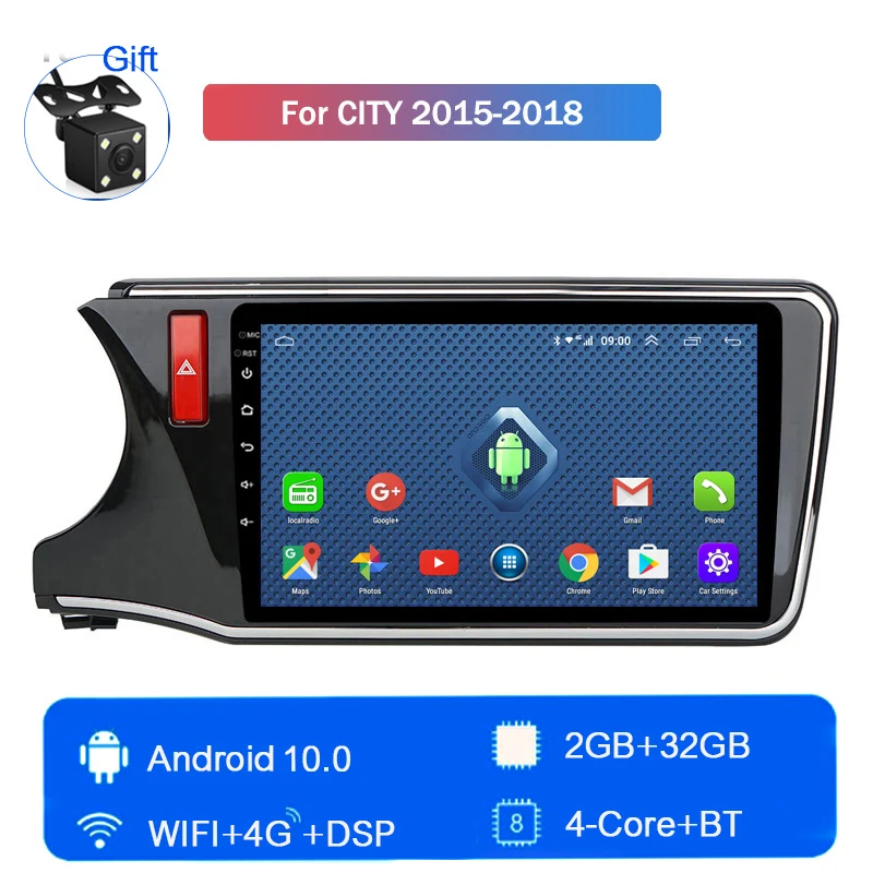 Автомобильный стерео Мультимедийный Плеер Android10, 4G LTE 32G для Honda City 2015 2016 2017 2018, большой экран Центрального управления, GPS-навигация