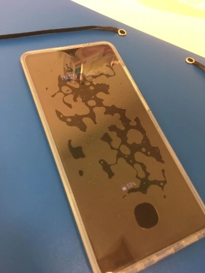 На экране нет воды, экран сухой!, Плохое качество пластика прилипает к стеклу телефона постоянно. Продавец, чтобы избежать, не признает плохое качество пластика и говорит мне, что я намочил свой телефон снова добровольно. Плохое качество пластика. Бежать.
