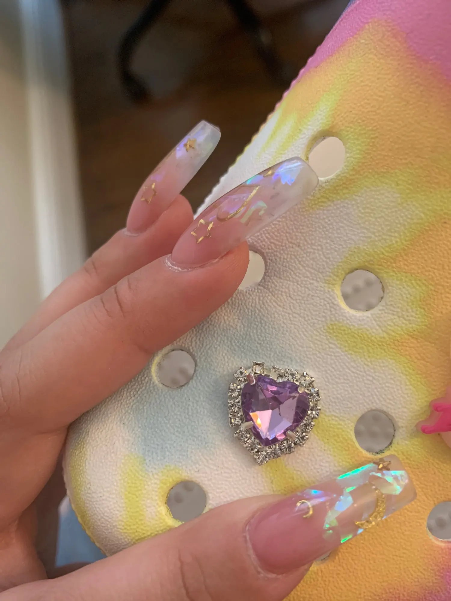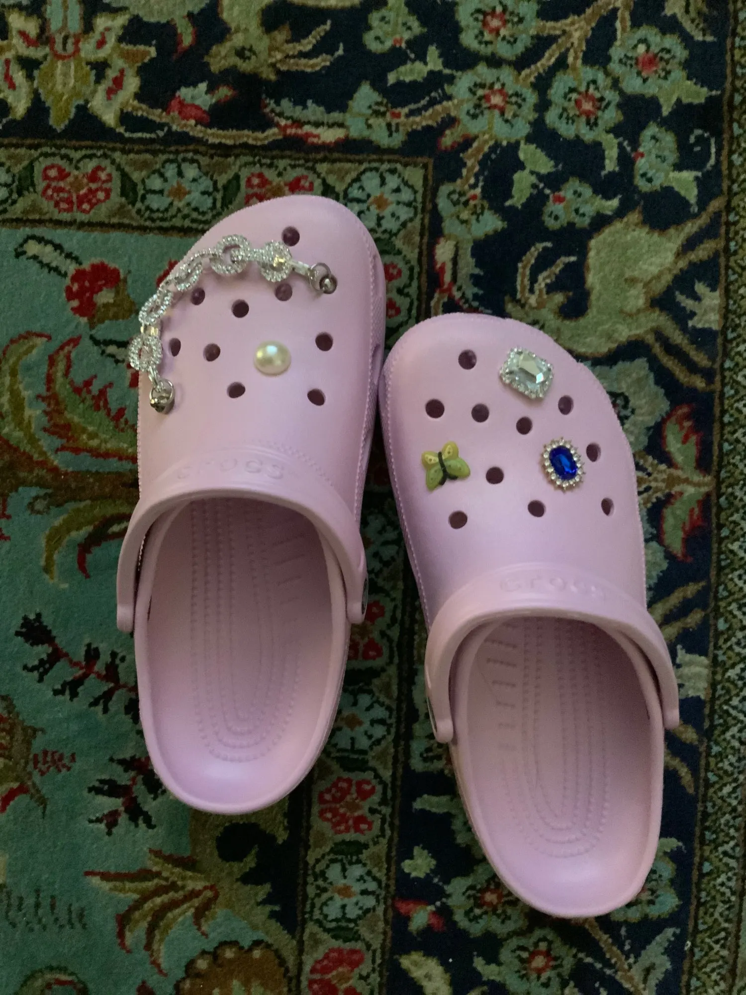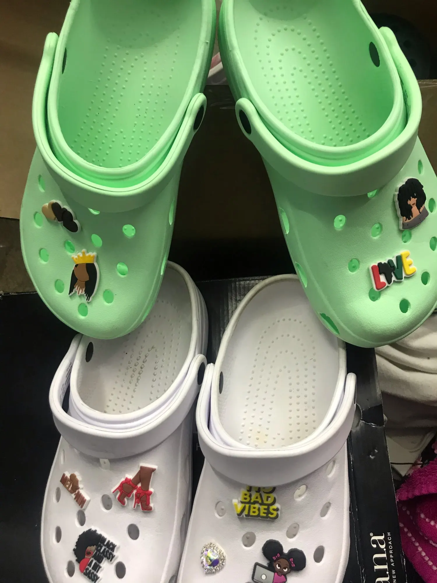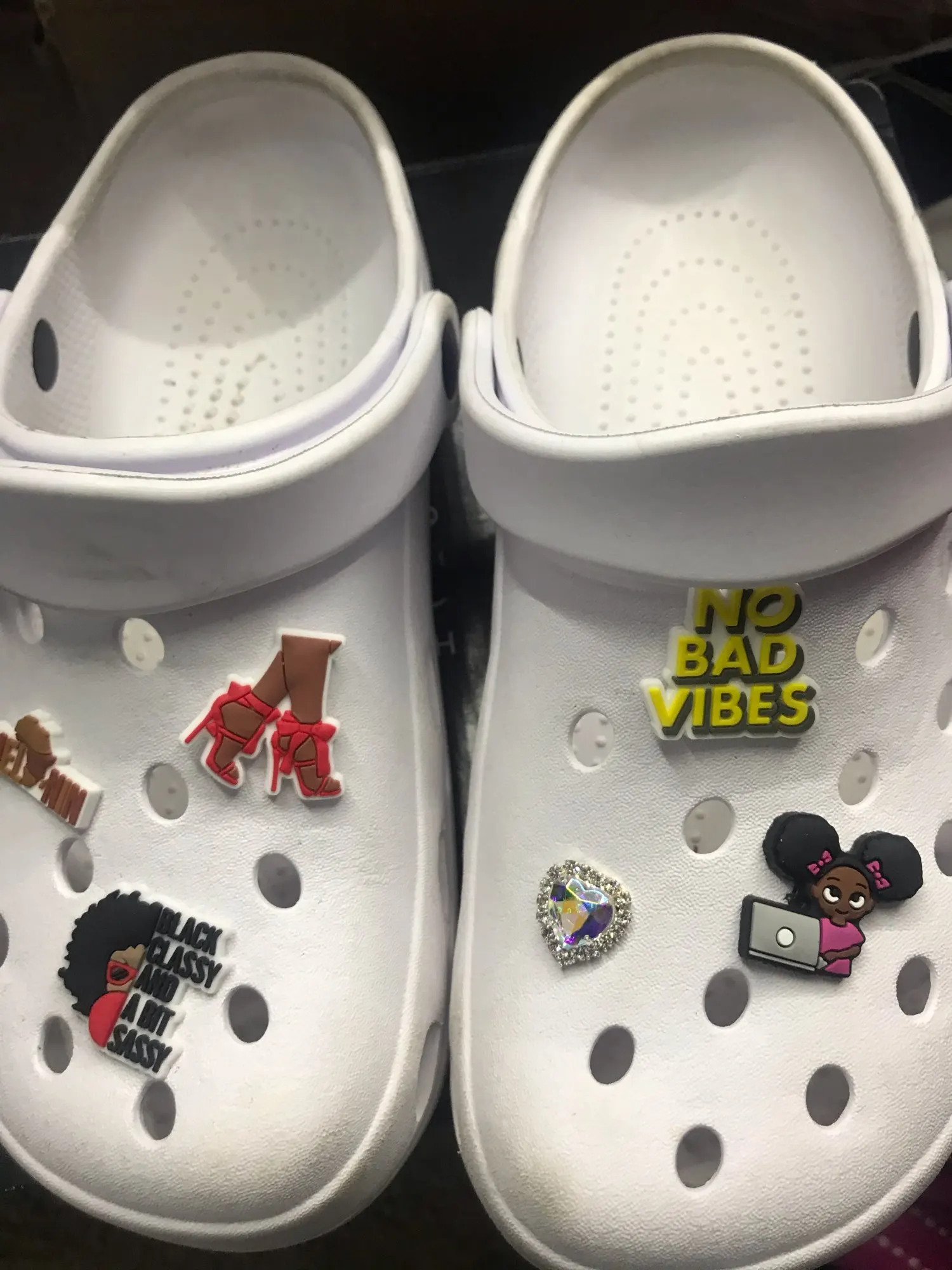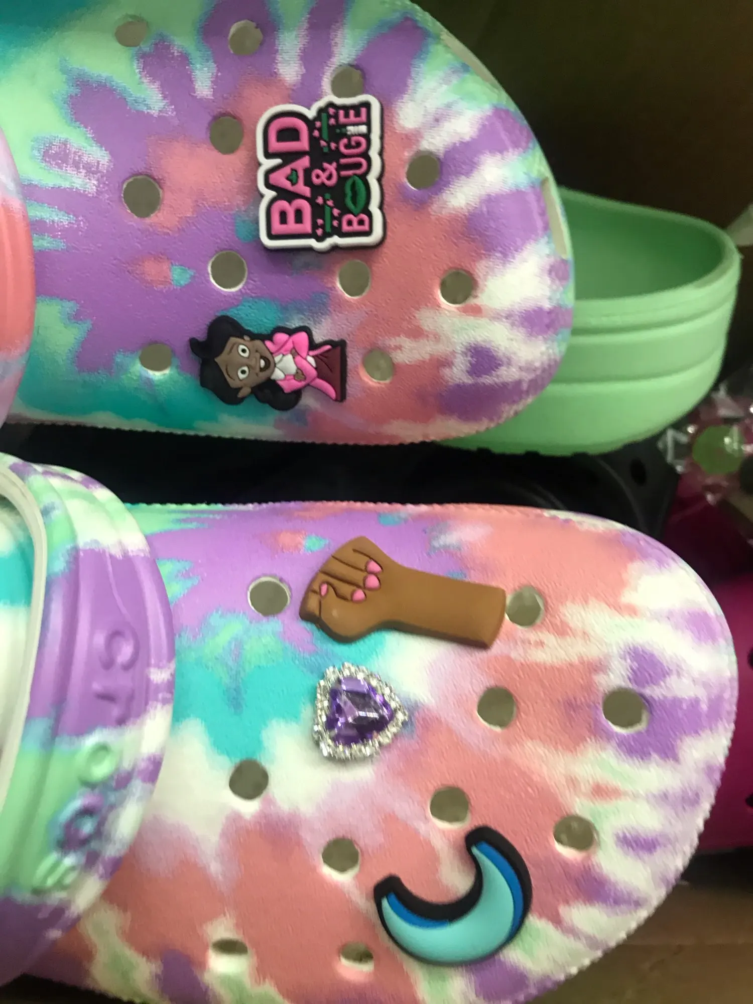 I’ll post pics soon once I put all my charms on, they look just like the photo, the rubber at the bottom that you push into the crocs hole is very tough!. I improvised and use my teeth to fold the rubber in like a taco & push it in the hole lol, other wise you might detach the charm & then you’ll need to glue it back together trying to force it in