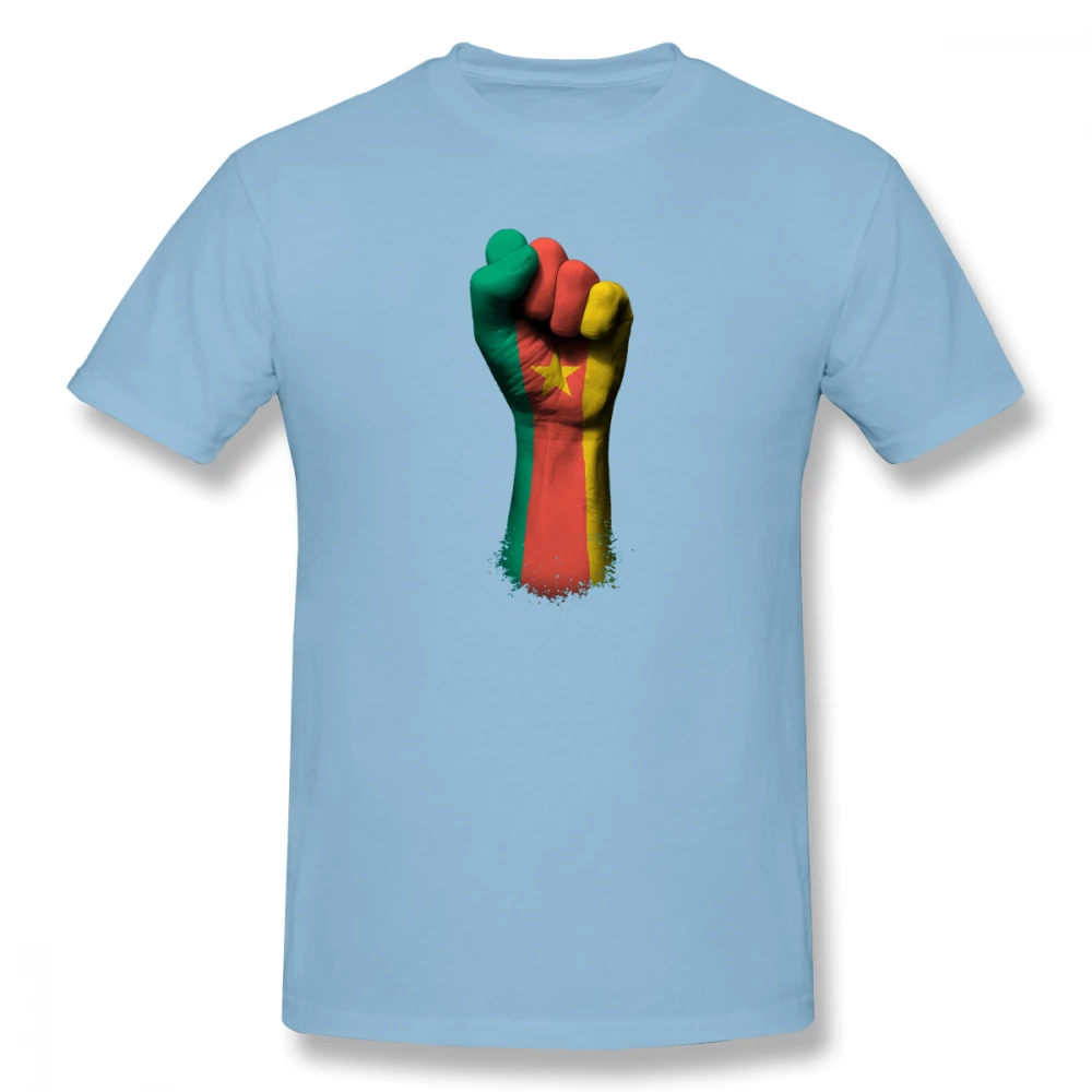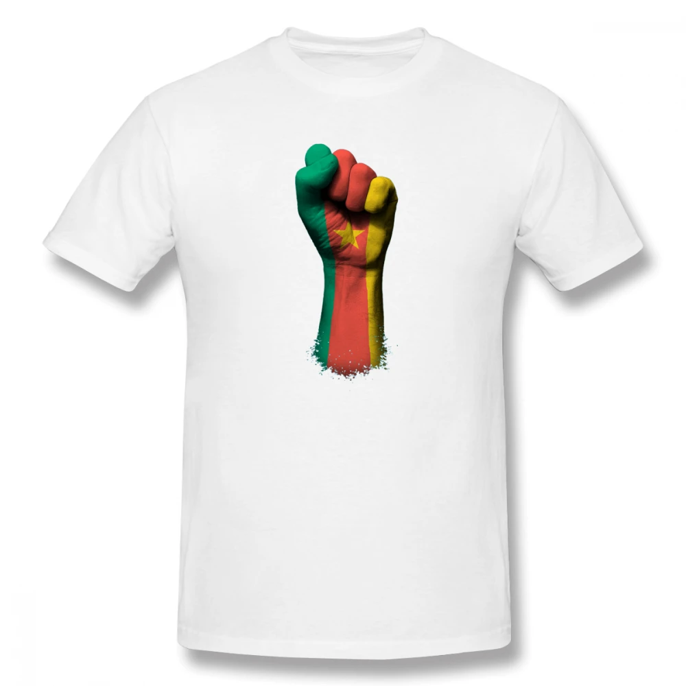 Забавная Мужская Базовая футболка R202 с изображением флага Камеруна на приподнятом кулаке, футболки с коротким рукавом, европейский размер