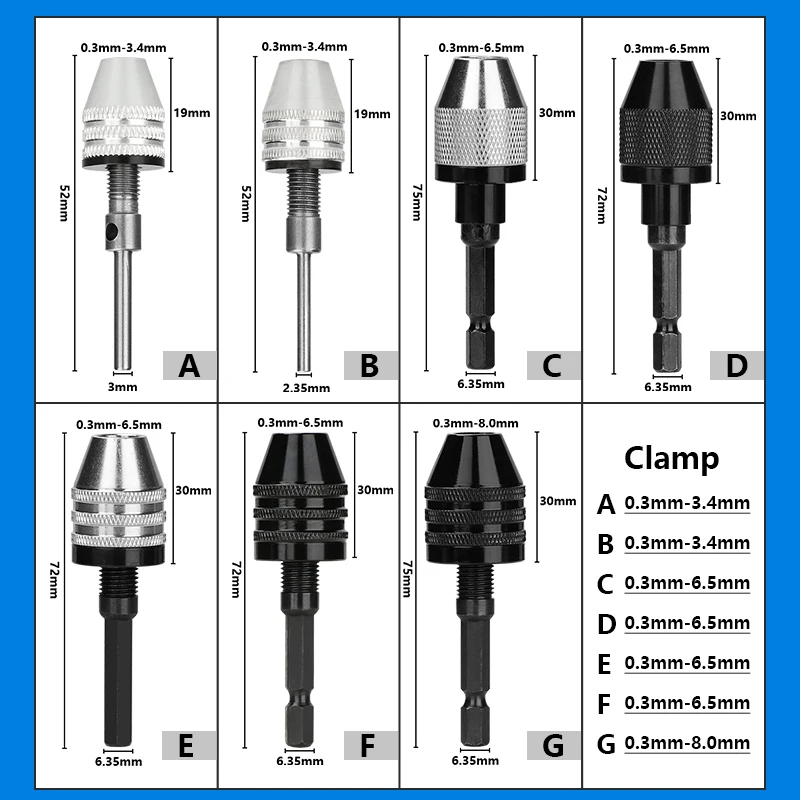 XCAN БЕСКЛЮЧЕВОЙ патрон сверла 0,3-3,4 мм 0,3-6,5 мм 0,3-8 мм шестигранный хвостовик патрон адаптер сверлильный преобразователь инструмент Сверлильный Патрон Зажим