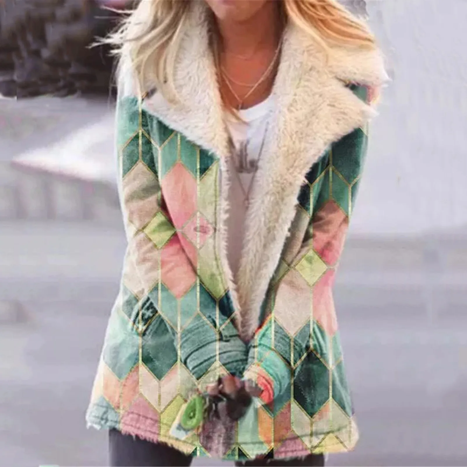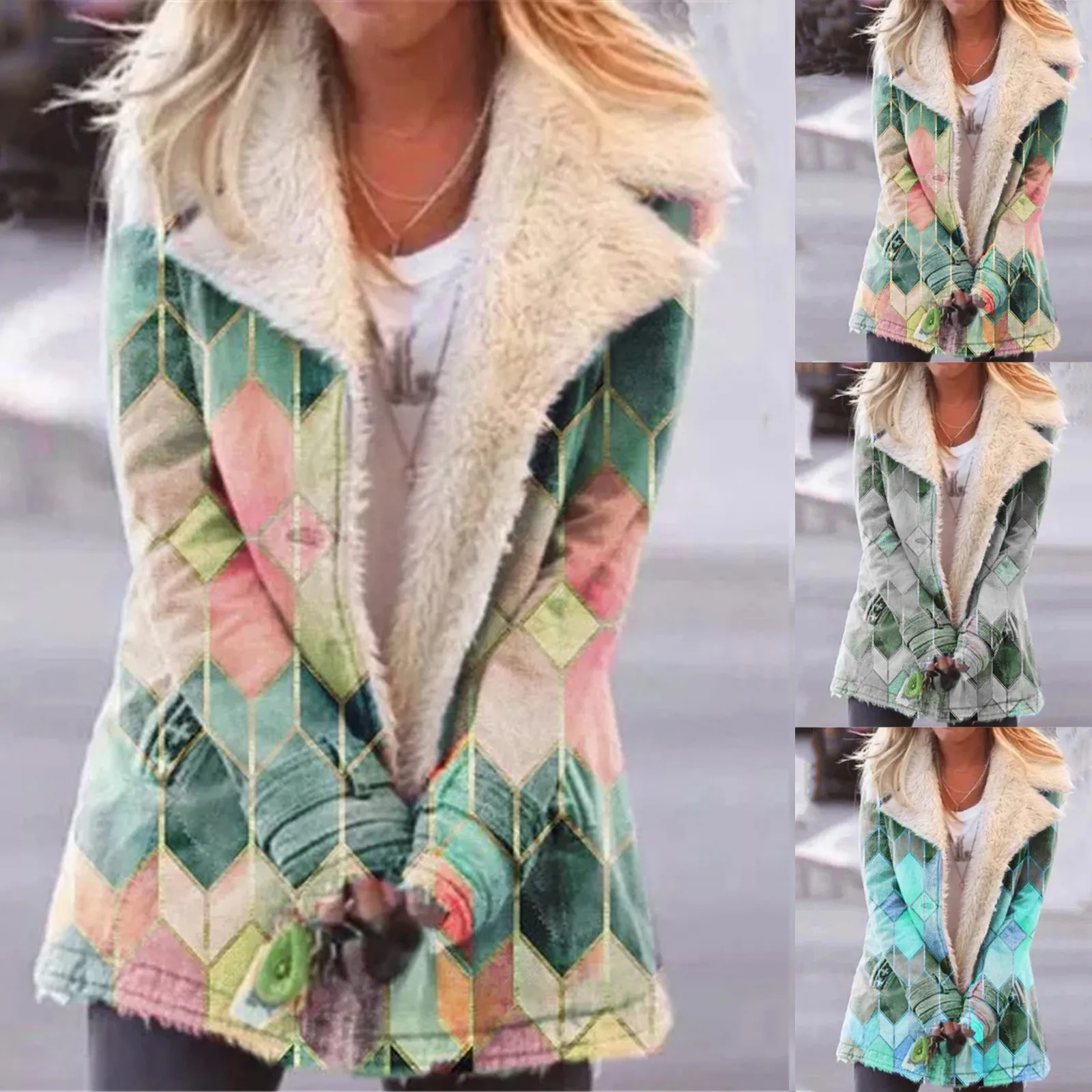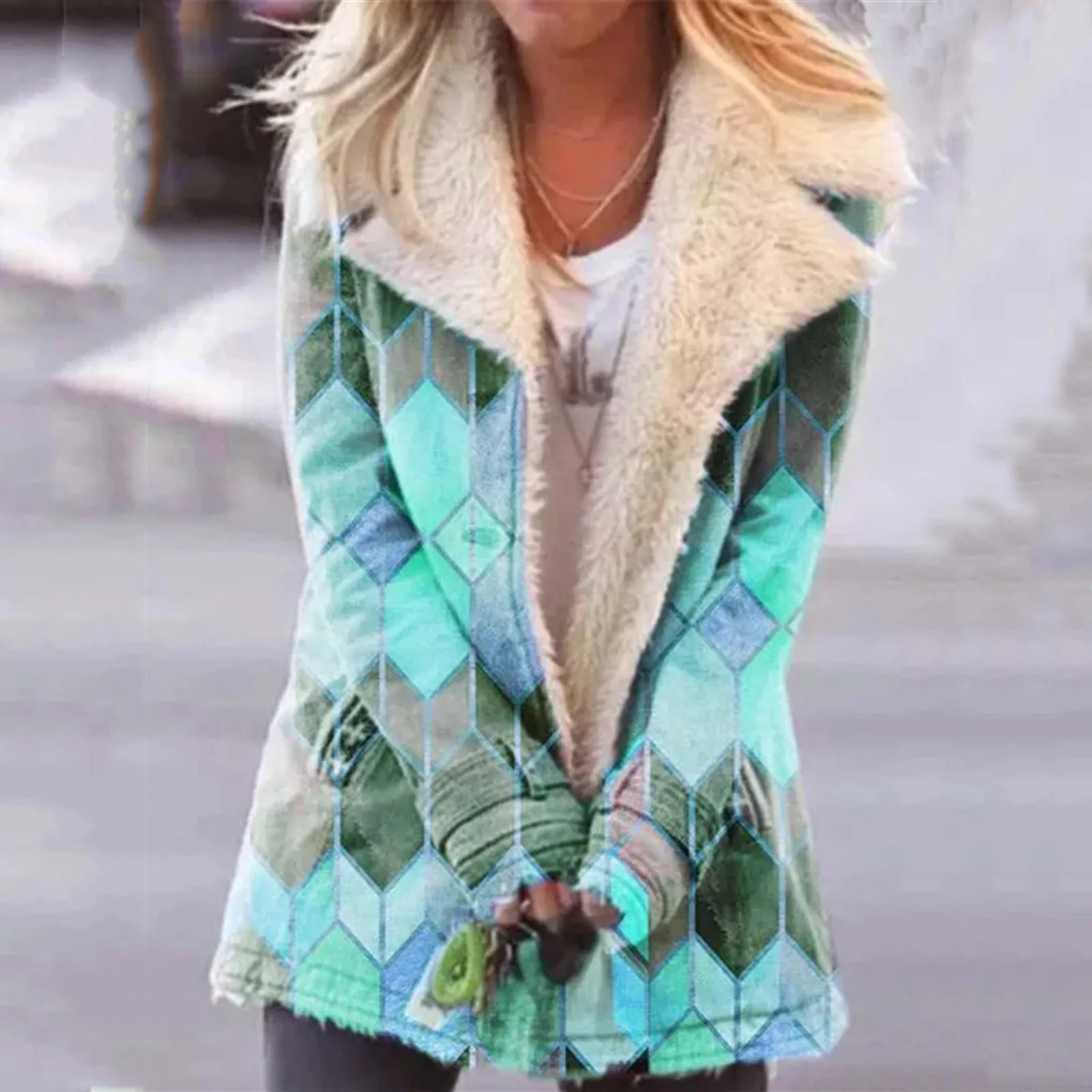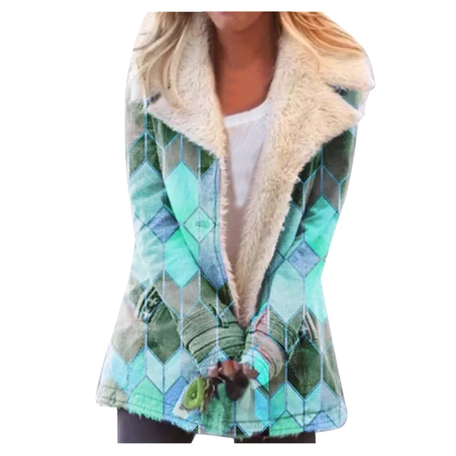 Женская однобортная куртка с отложным воротником и длинным рукавом из хлопка