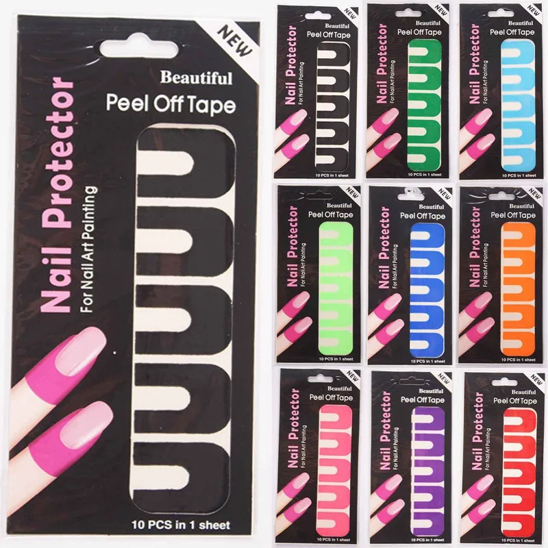 10 шт. U-shape форме, благодаря чему создается ощущение невесомости с ногтей протектор Стикеры s Портативный разлива кислотоупорная шелушиться клейкие Ленты картина пилка для ногтей формы крышка руководство Стикеры
