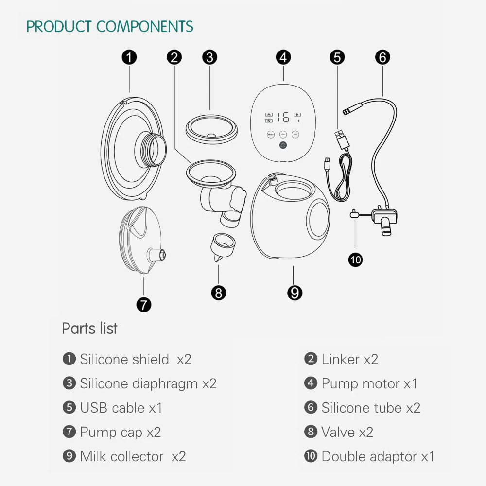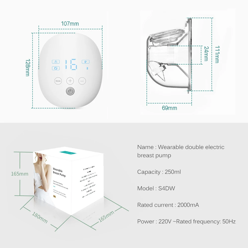 Двойной Электрический молокоотсос, портативный, с зарядкой от USB, без БФА