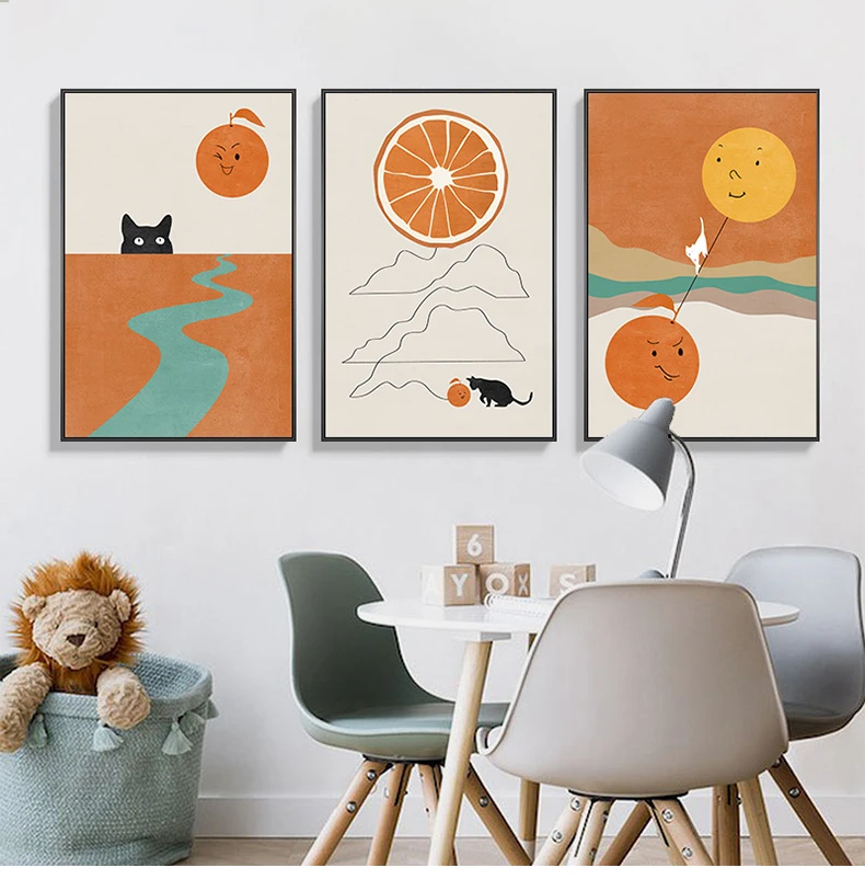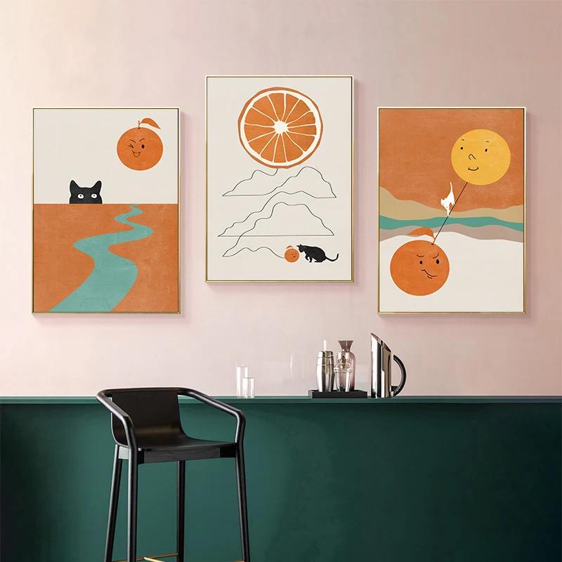 Оранжевый абстрактный пейзаж, настенная Картина на холсте, скандина...