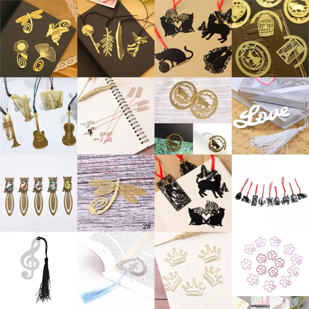 Винтаж из золотистого металла Жилка листа закладки для книги класса люкс Бизнес подарок с карты Envelopeor для учителей студент, поставка канцтоваров