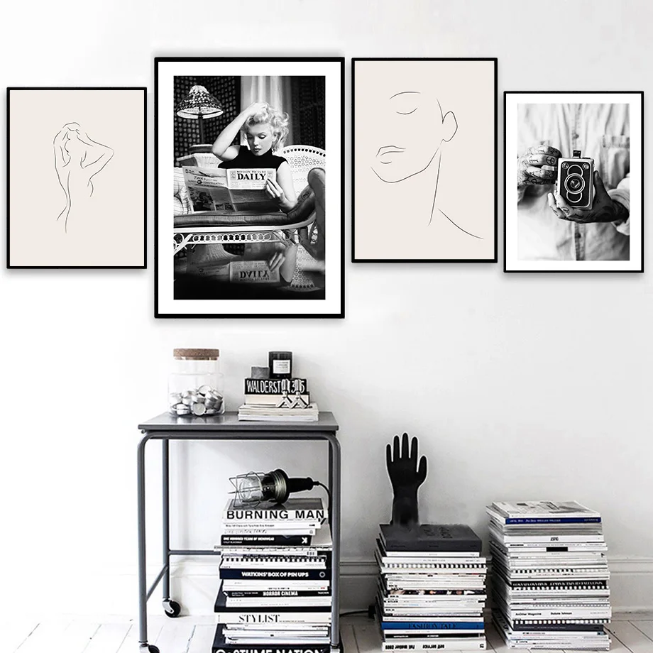 Винтажные настенные картины Мэрилин Монро с простой линией, настенные постеры в скандинавском стиле для декора гостиной