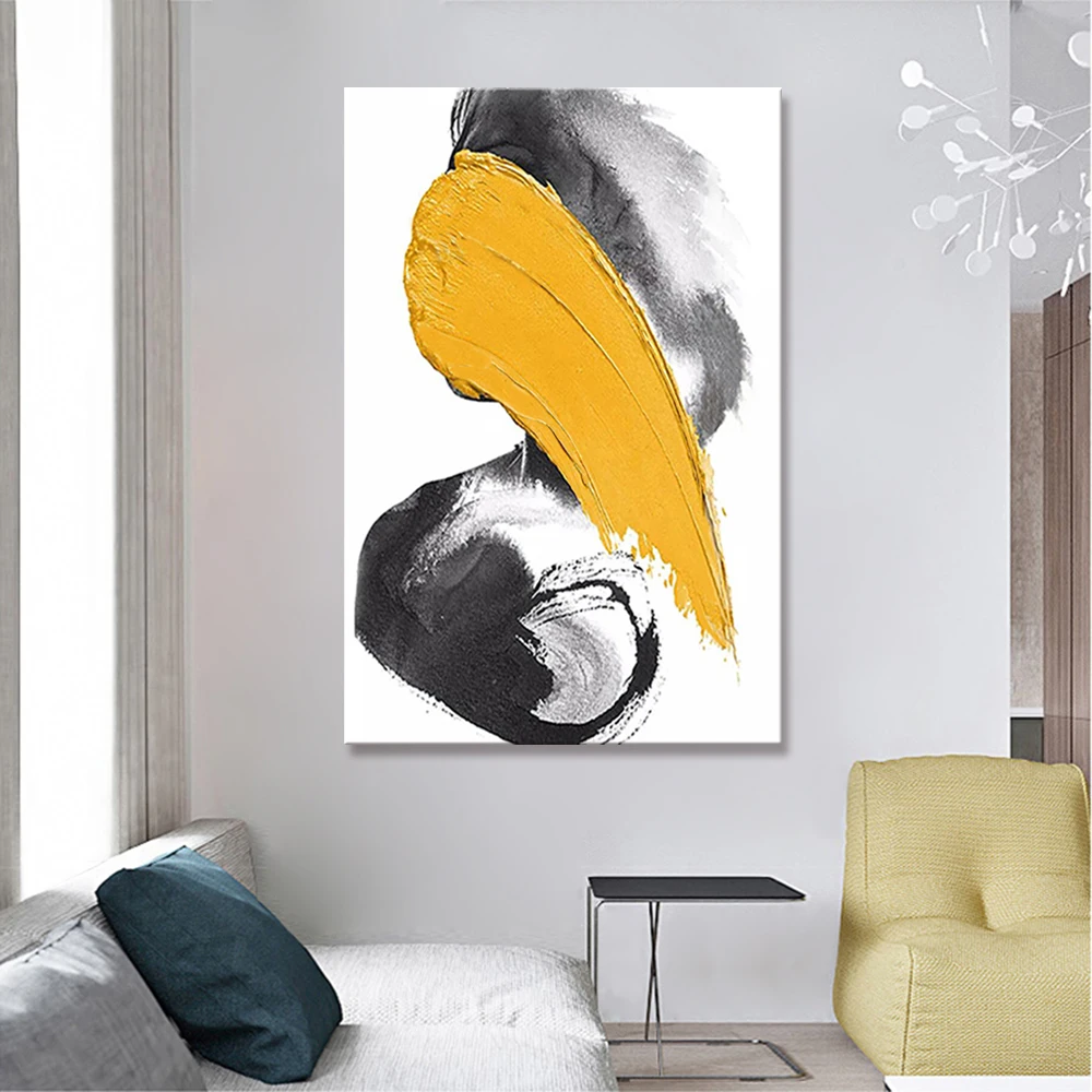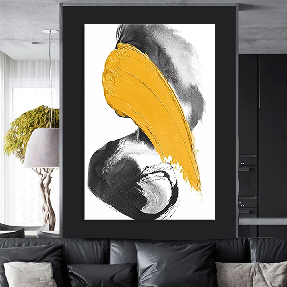 Настенная картина Mintura для гостиной, картина маслом на канве, ручная роспись, абстрактная картина желтого и черного цвета, домашний декор без рамки.