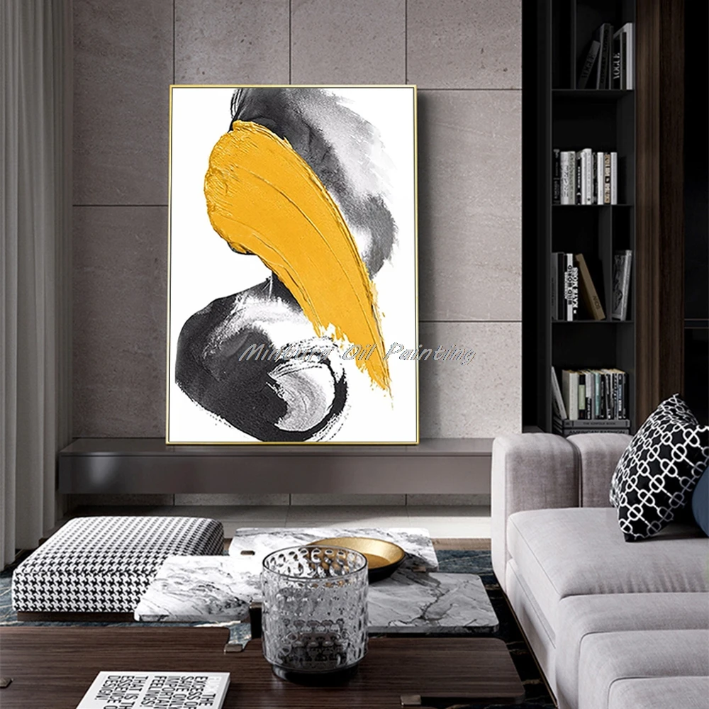 Настенная картина Mintura для гостиной, картина маслом на холсте, ручная роспись, абстрактная картина желтого и черного цветов, домашний декор, без рамки