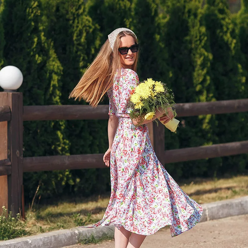 Платок-Бандана женский треугольный с цветочным принтом, бохо для волос