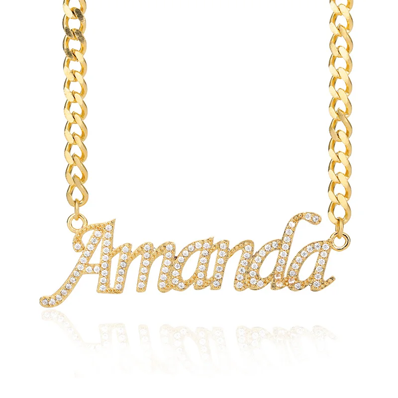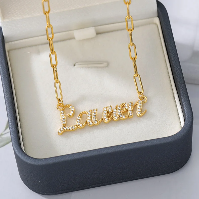 Искрящиеся по заказу покупателя циркон ожерелье из нержавеющей стали подвеска в форме изготовленные на заказ с украшением в виде кристаллов имя ожерелье, Женские Ювелирные изделия, 12 шрифт