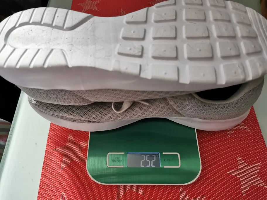 Оценка очень относится к цене, потому что я получил их в качестве выдачи AliExpress, поэтому, будучи бесплатными, они уже идут хорошо. Но если бы мне пришлось заплатить за его цену, я бы сказал, что они низкого качества. Некоторые следы клея заметны на подошве и свободные нити внутри. Подошва представляет собой простой полиуретан. Если вы весите 95 кг, как я, вы чувствуете, что ему не хватает амортизации, но в человека весом 70 кг я думаю, что ощущение будет более комфортным. Теннисные туфли очень легкие и дышащие, и доставка была быстрой, так что это зависит от каждого, если вы хотите заплатить за этот продукт или искать что-то лучшее качество. Сегодня я гулял несколько км с ними, и в целом они в порядке. Наконец, скажите, что размер соответствует размеру Европы.