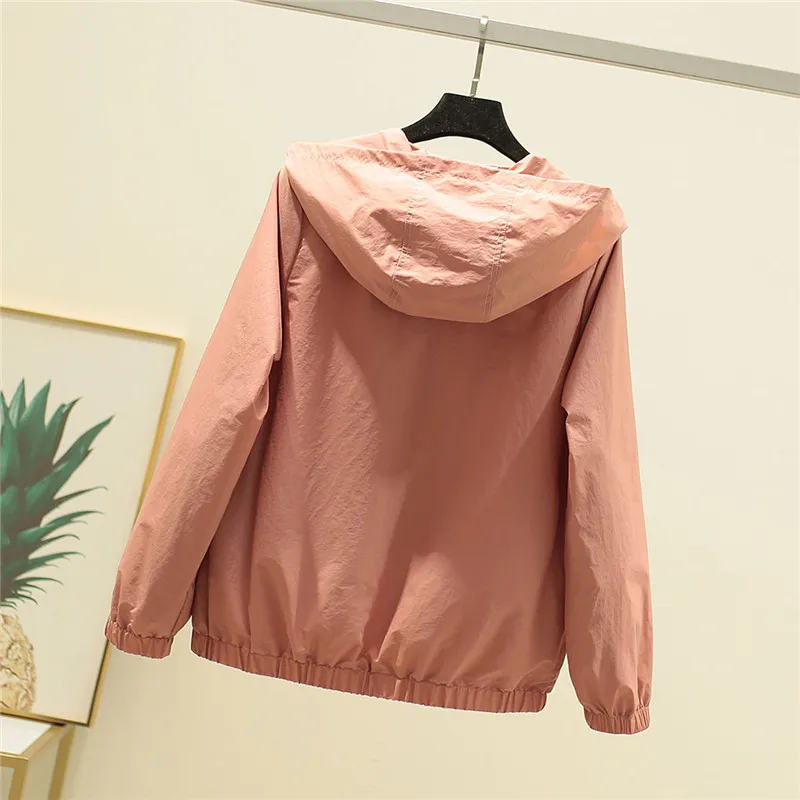 Куртка женская однотонная на молнии с капюшоном, повседневный свободный классический пиджак в Корейском стиле с длинным рукавом, уличная спортивная верхняя одежда, большие размеры, весна