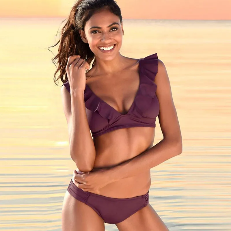 Купальник бикини женский с чашками пуш-ап, пикантный однотонный купальник, комплект для плавания с цветочным принтом, пляжная одежда в бразильском стиле, лето 2021