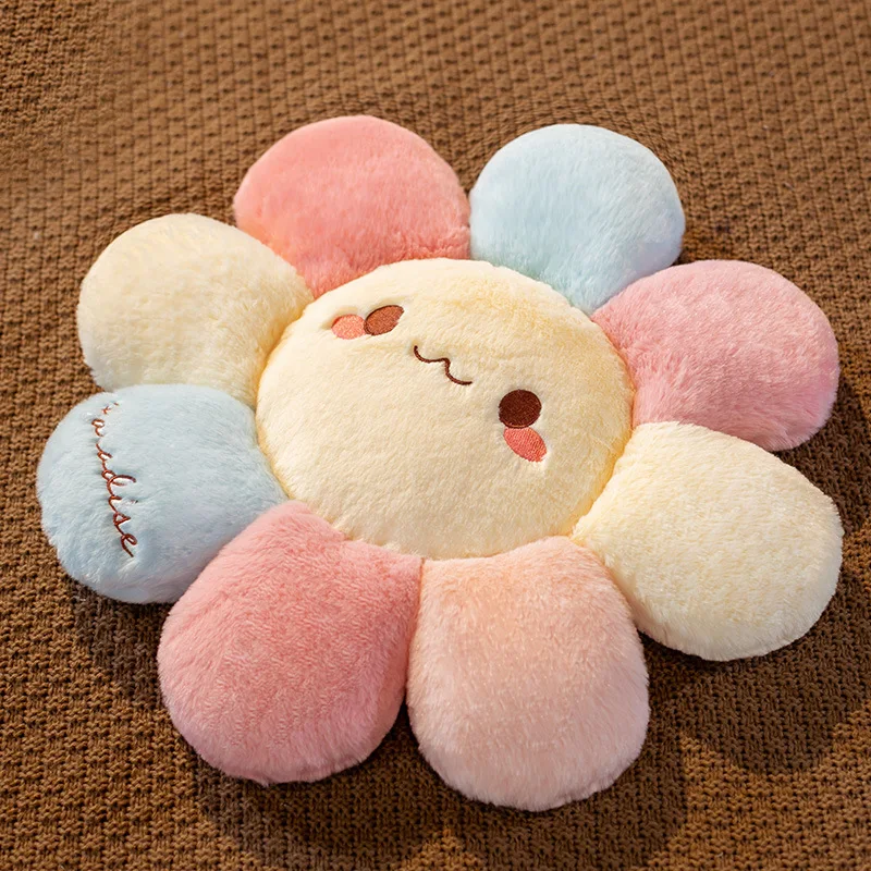 Подушка для стула с радужным подсолнухом, с милым улыбающимся лицом...