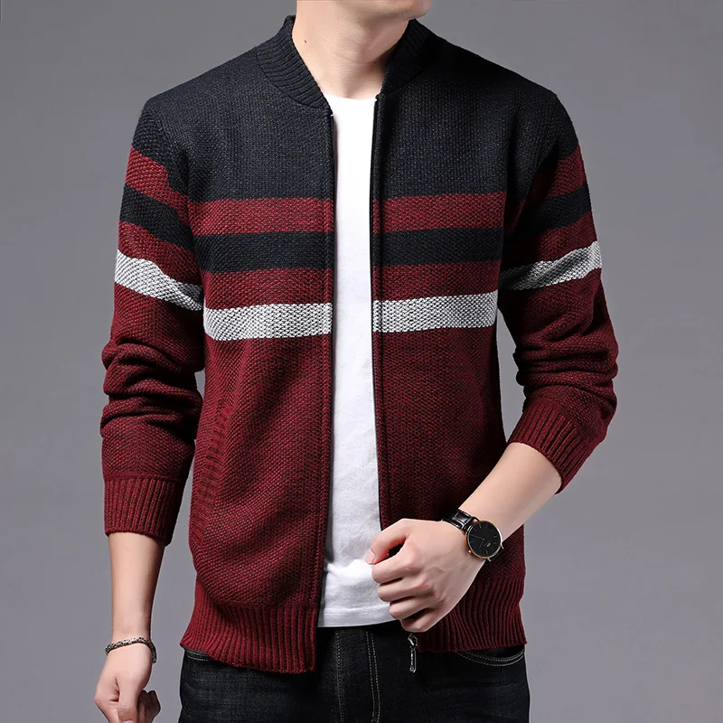 Мужской вязаный кардиган BROWON, повседневная одежда в Корейском стиле, утепленный кардиган на молнии, в стиле пэчворк, зима 2019
