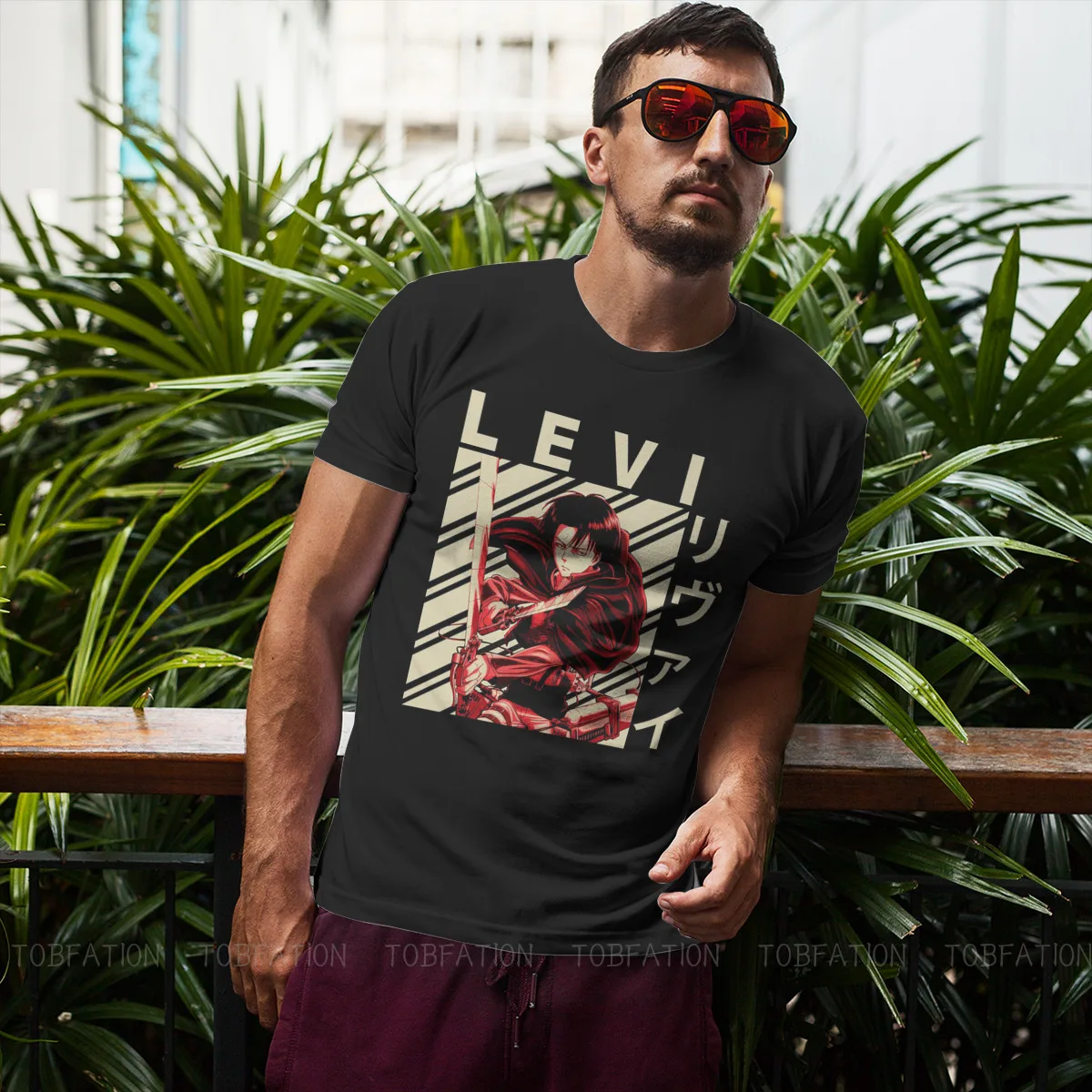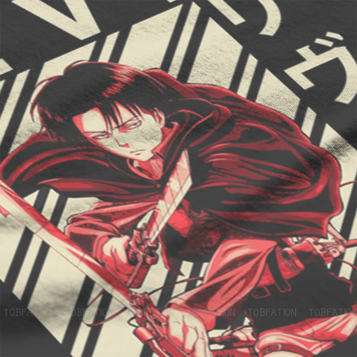 Футболка Levi Ackerman Мужская винтажная, топ из чистого хлопка с коротким рукавом, арт атака на титанов, Черная