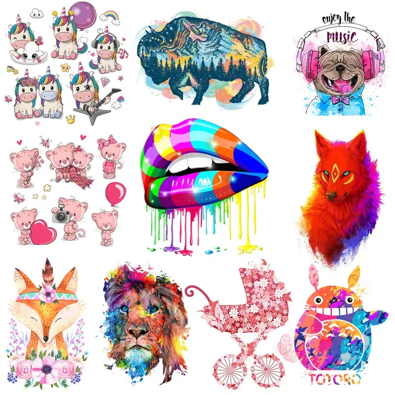 Секс Губы теплопередача для одежды Железный На красочных животных Лев Единорог виниловые передачи для одежды наклейки для DIY Футболка