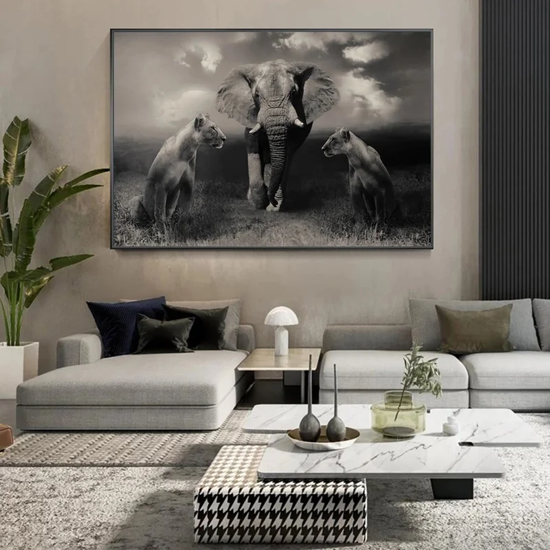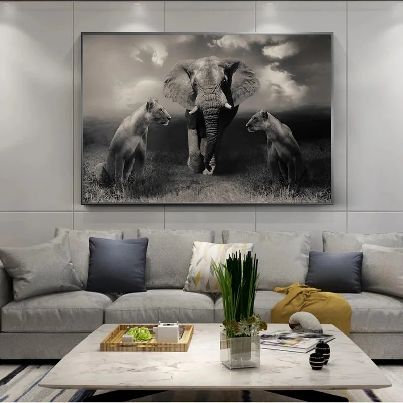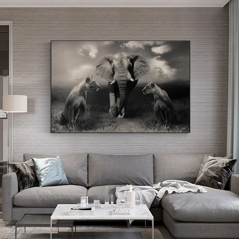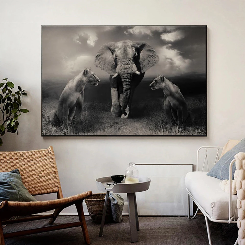 В африканском стиле дикого льва и слона холст художественные плакаты и принты черно-белые Животные искусство настенные картины художественные фотографии
