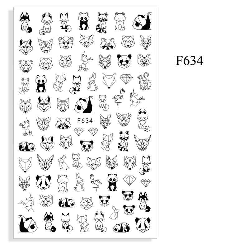 1 лист 3D наклейки для ногтей черные белые Геометрические Цветочные буквы узоры клейкие Переводные переводные наклейки для ногтей Дизайн ногтей украшение