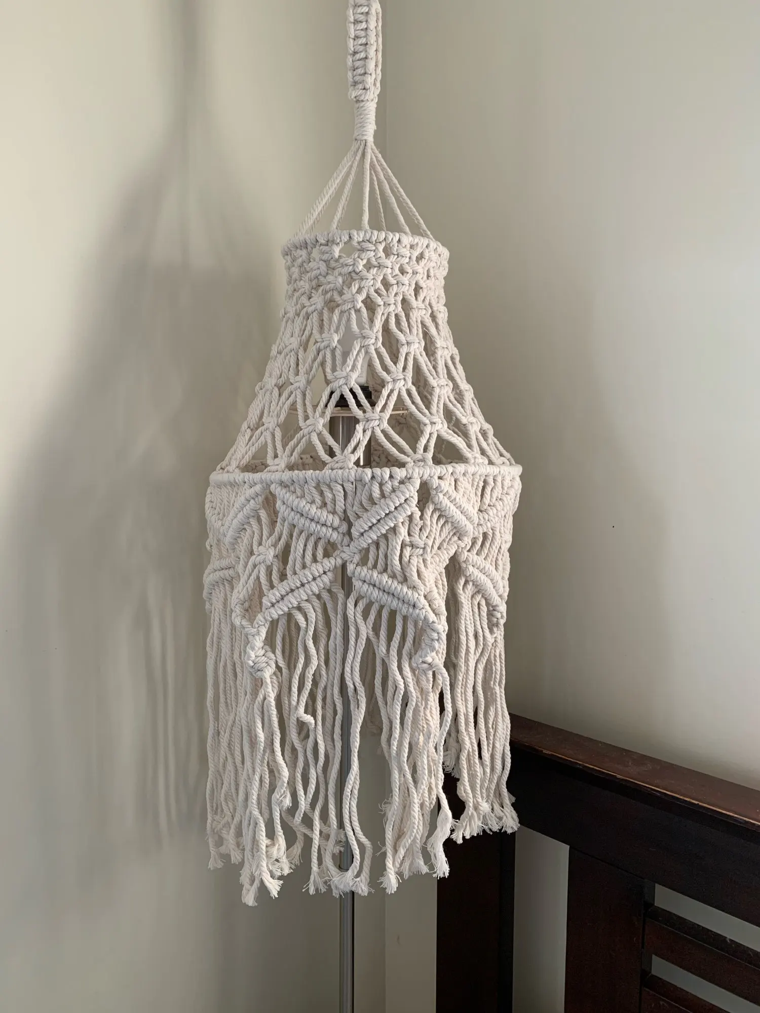 Этот красивый абажур макраме изготовлен из хлопчатобумажной веревки и по уникальному дизайну. Этот уникальный и элегантный дизайн привнесет богемную атмосферу в вашу комнату и украсит ваше пространство.Этот товар будет потрясающим акцентом для гостиной, спальни, детской комнаты, декора стен в стиле бохо, свадебного декора или богемных тематических вечеринок. И это хорошая рекомендация, чтобы дать кому-то в подарок.Этот абажур макраме не включает лампу, вы можете установить лампу внутри самостоятельно, чтобы создать декоративное удобное освещение, естественную, мягкую и теплую атмосферу для вашей комнаты.Изготовлено из натурального хлопка и стального кольца. Эти подвесные фонарики-прекрасный способ подчеркнуть комнату или событие! Абажур макраме сделает любую комнату наполненной мистикой.