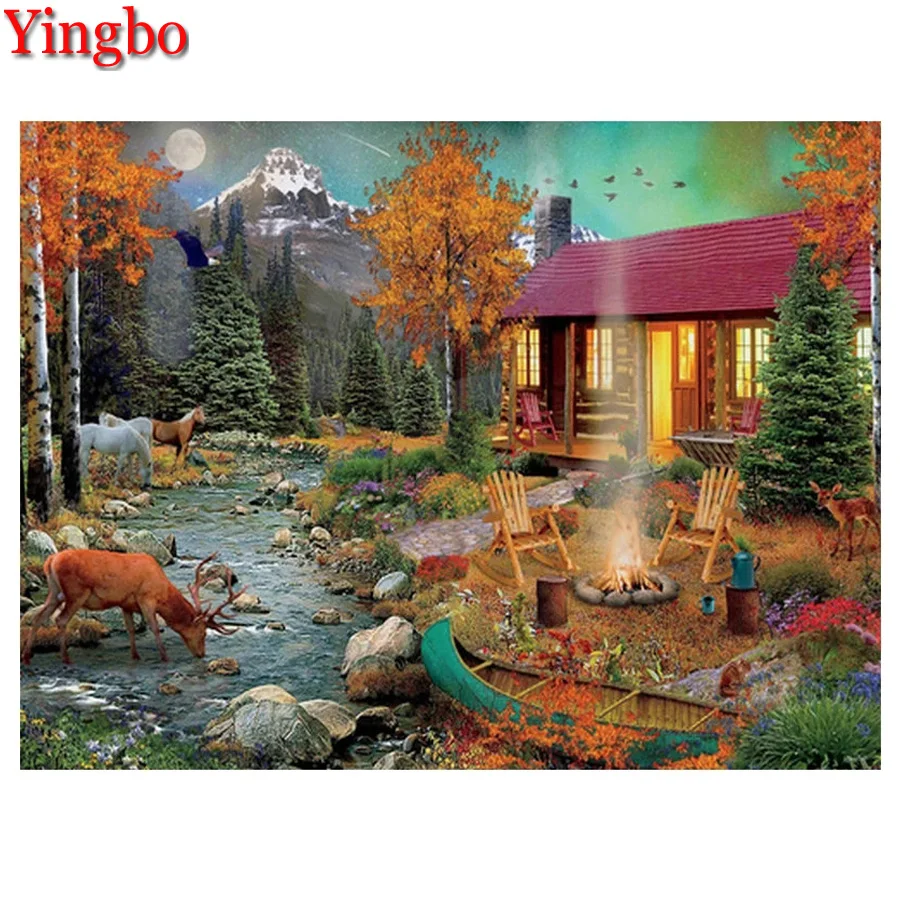 Алмазная 5D картина сделай сам с квадратными стразами, вышивка в виде осеннего дома, пейзажа, мозаика для вышивки крестиком, украшение Стразы