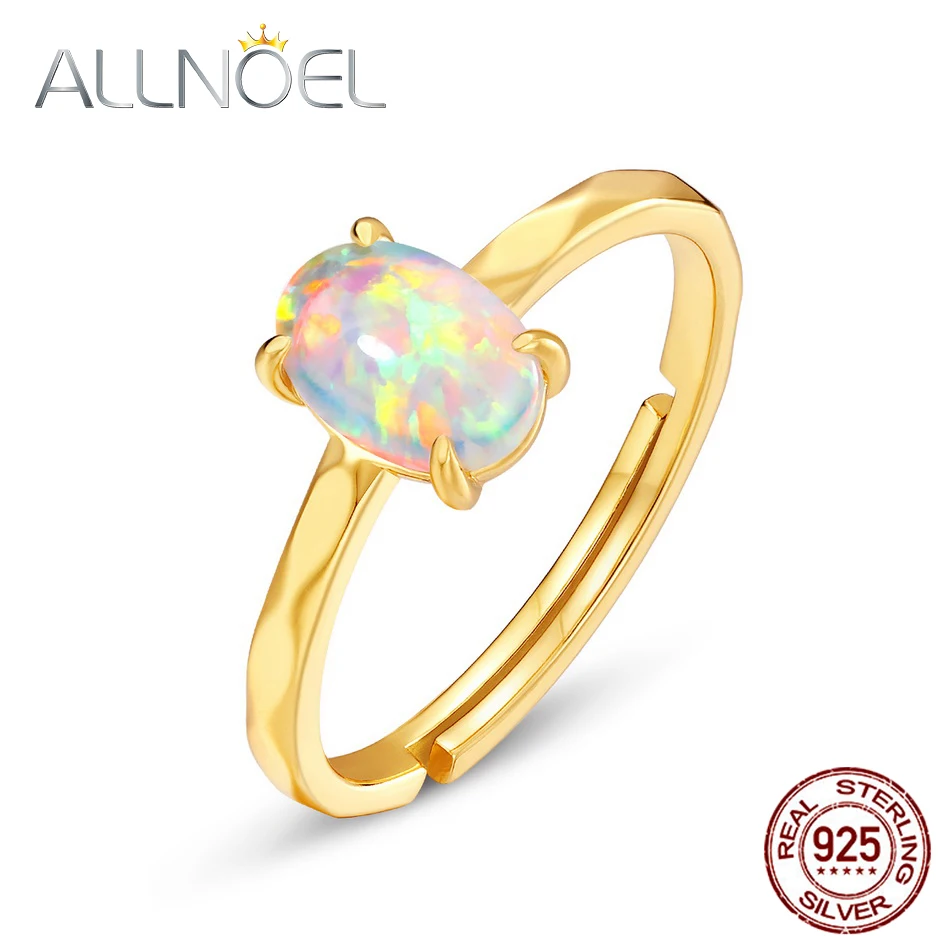 ALLNOEL Твердые 925 пробы серебряные кольца для женщин синтетический опал настоящая позолота Роскошные обручальные ювелирные украшения 2020 новый подарок