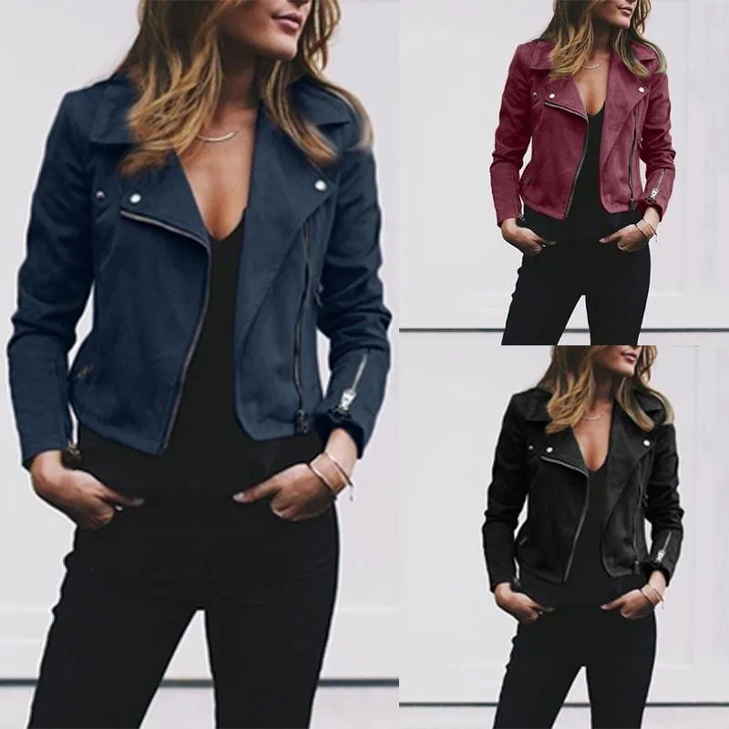 Куртка женская из искусственной замши, однотонная Байкерская верхня...