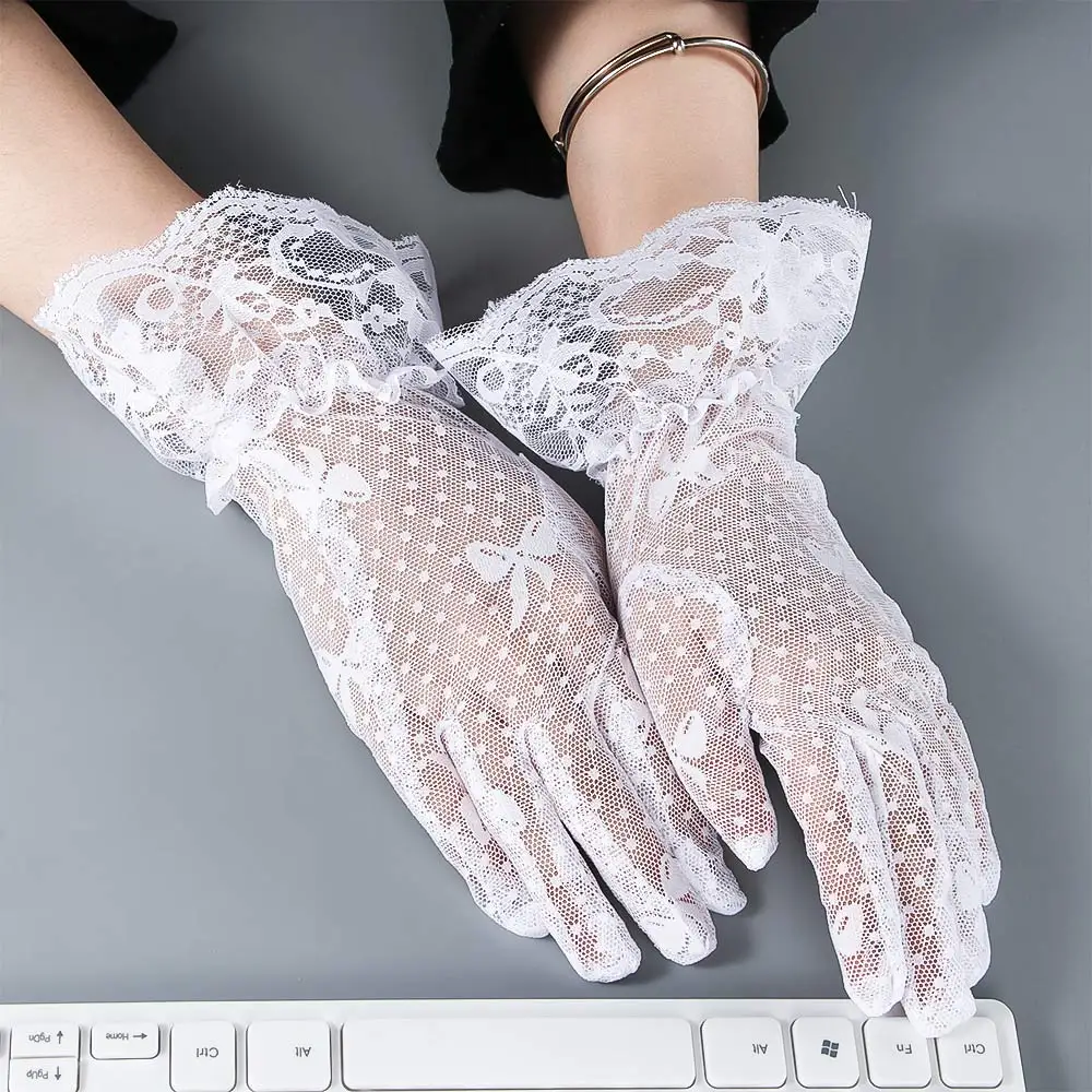 Перчатки сетчатые, черные, белые, с закрытыми пальцами, кружевные, летние, солнцезащитные, для вождения