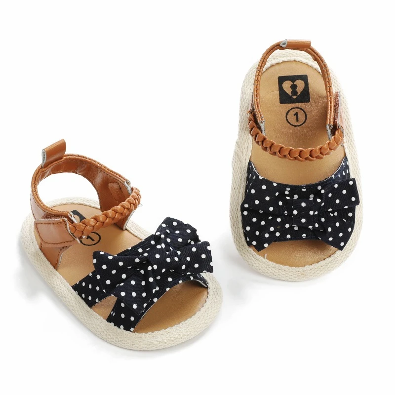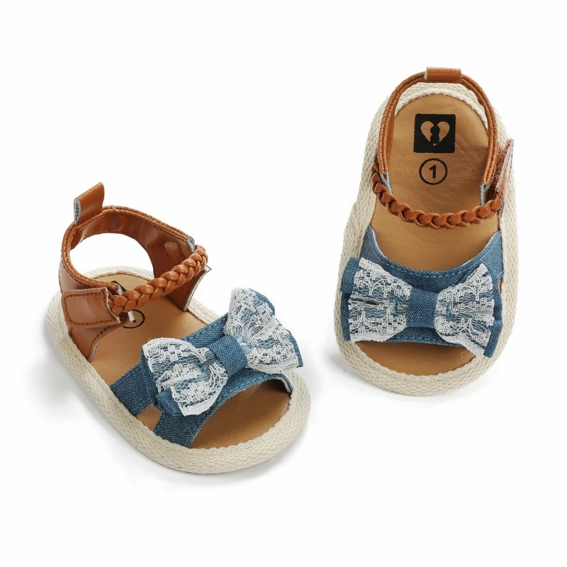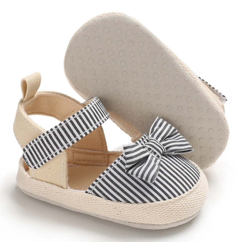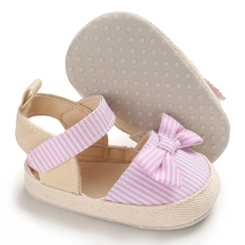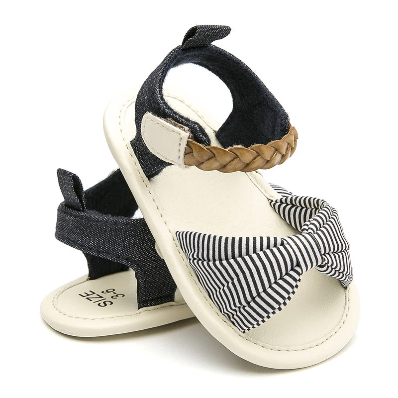 Сандалии для маленьких девочек, парусиновые сандалии с бантом Новорожденные малыши, летние мягкие сандалии обувь для младенцев для маленьких девочек