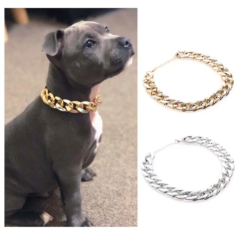 Позолоченные ошейники для собак, змеиная цепь, большая собака, модные ювелирные изделия, аксессуары для питбуля, мопса, зажимной ошейник, пластиковый 10E
