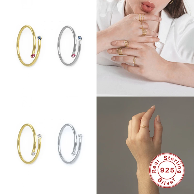 Женское Открытое кольцо со змеиным кристаллом, регулируемое кольцо из стерлингового серебра 925 пробы с синим и красным цирконием, Ювелирное Украшение для вечерние, подарок