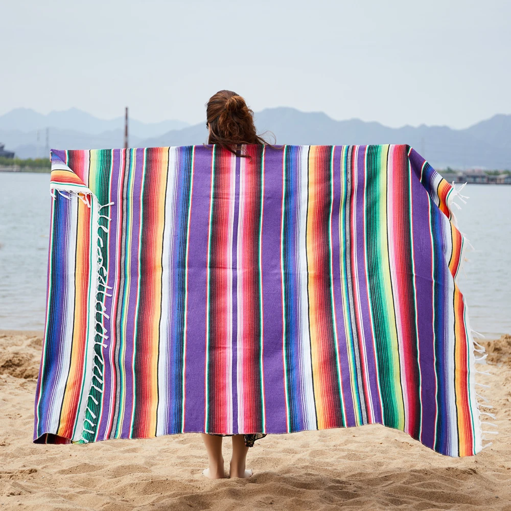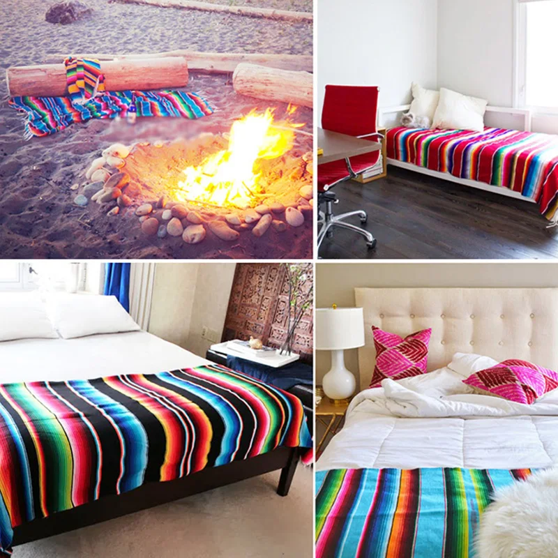 Этническое Радужное мягкое Полосатое пляжное полотенце для взрослых, многофункциональное полотенце для ванной, скатерть, полотенце для дивана, Гобеленовые шарфы