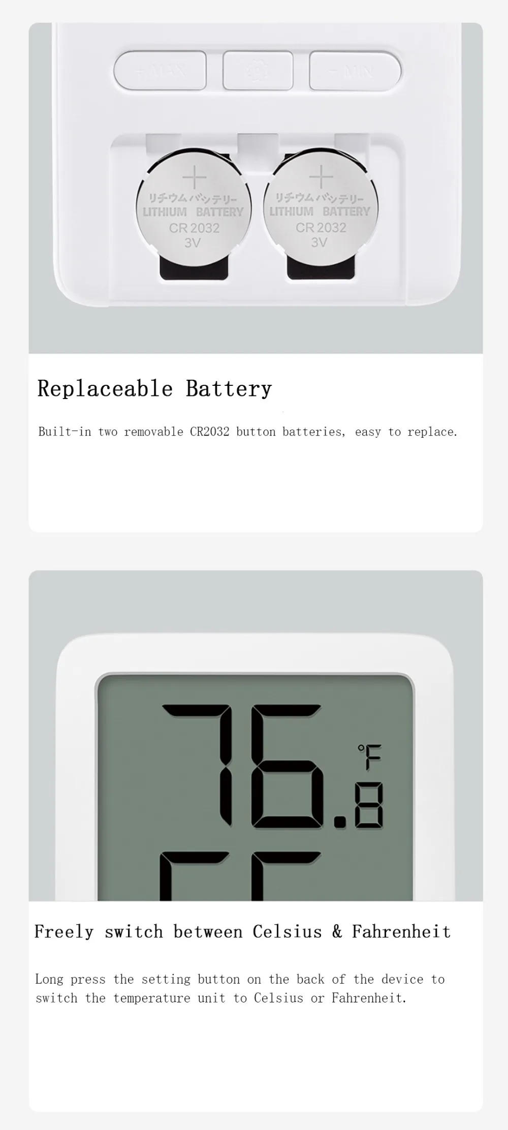 5. Низкое потребление E-ink экран, 2 батареи кнопки CR2032 в течение одного года.