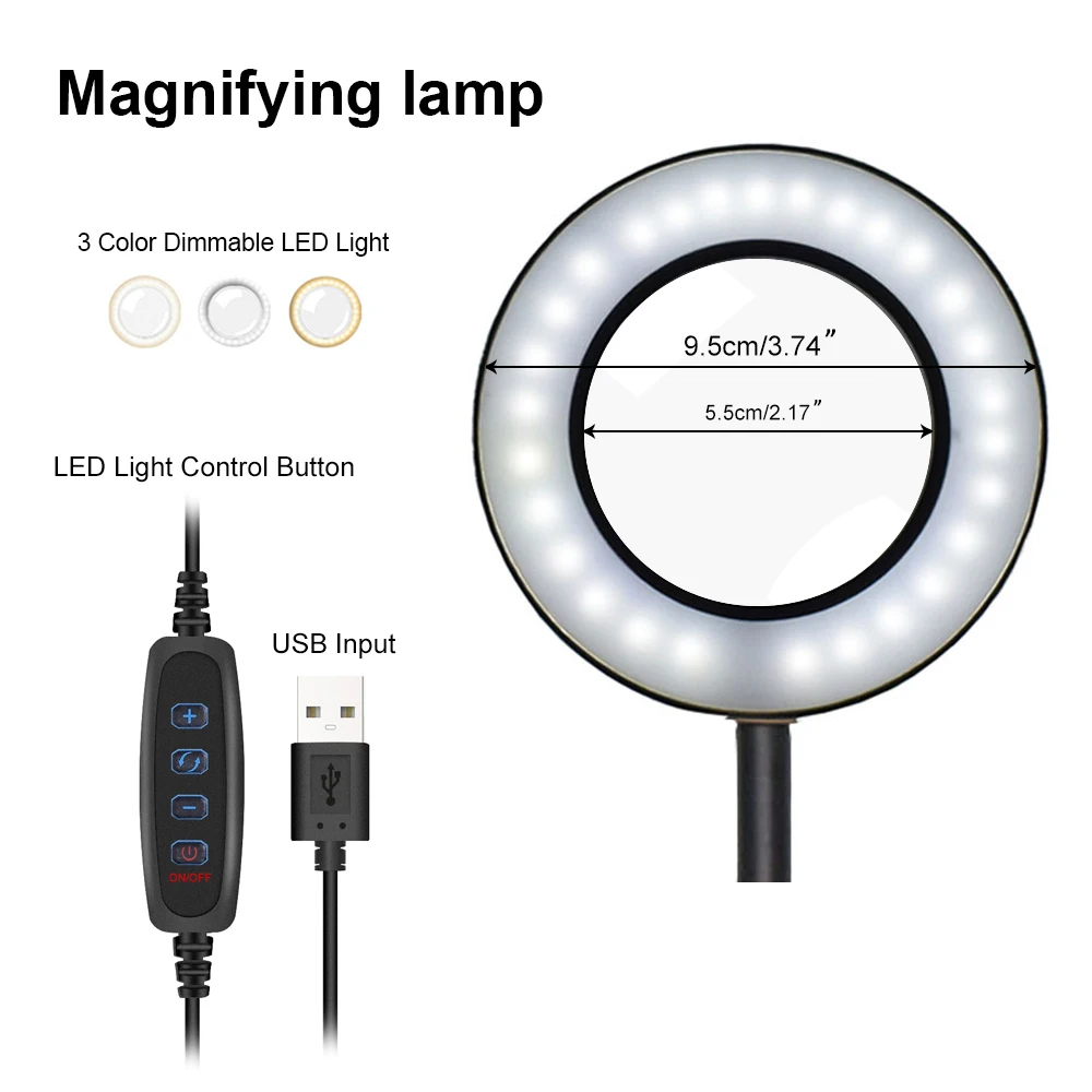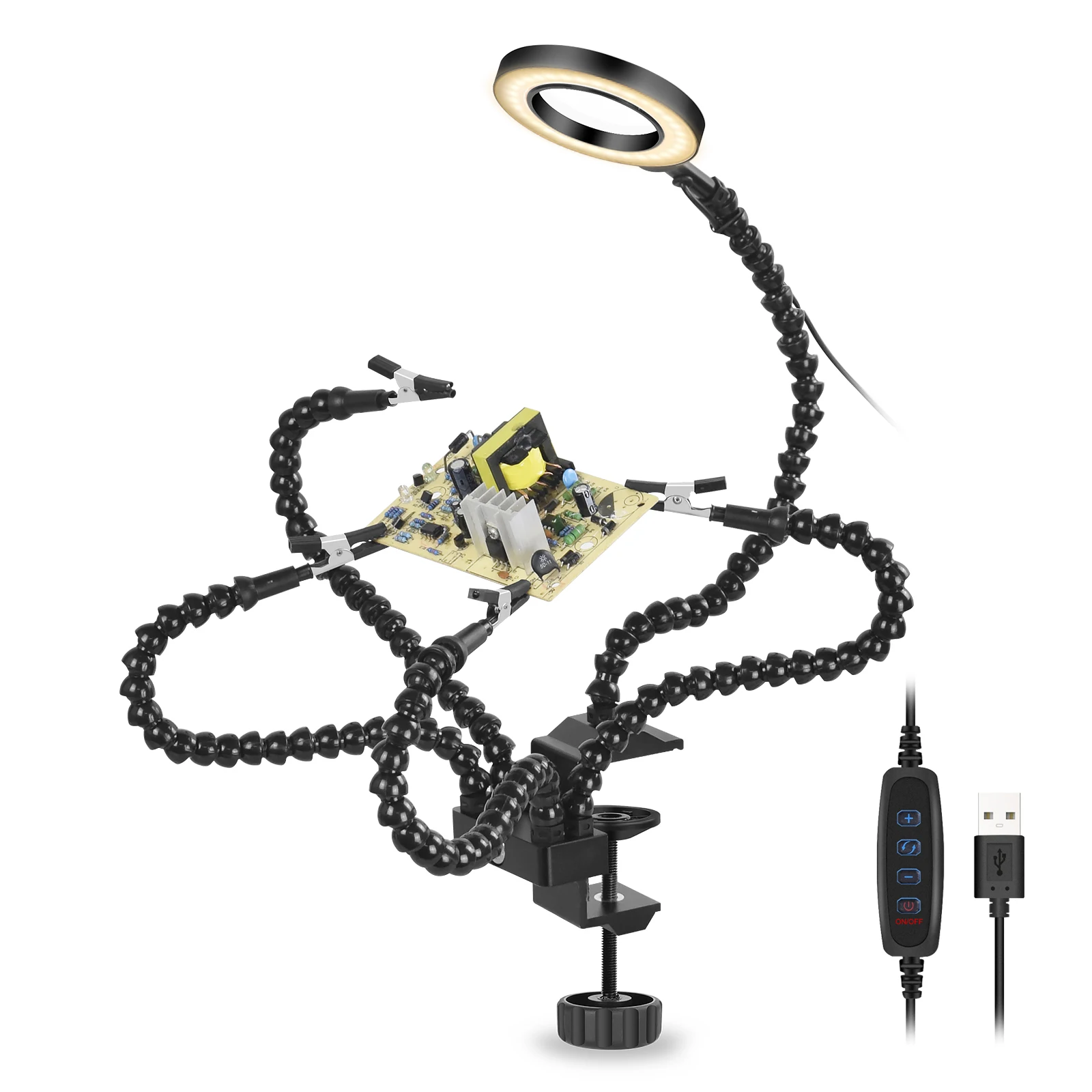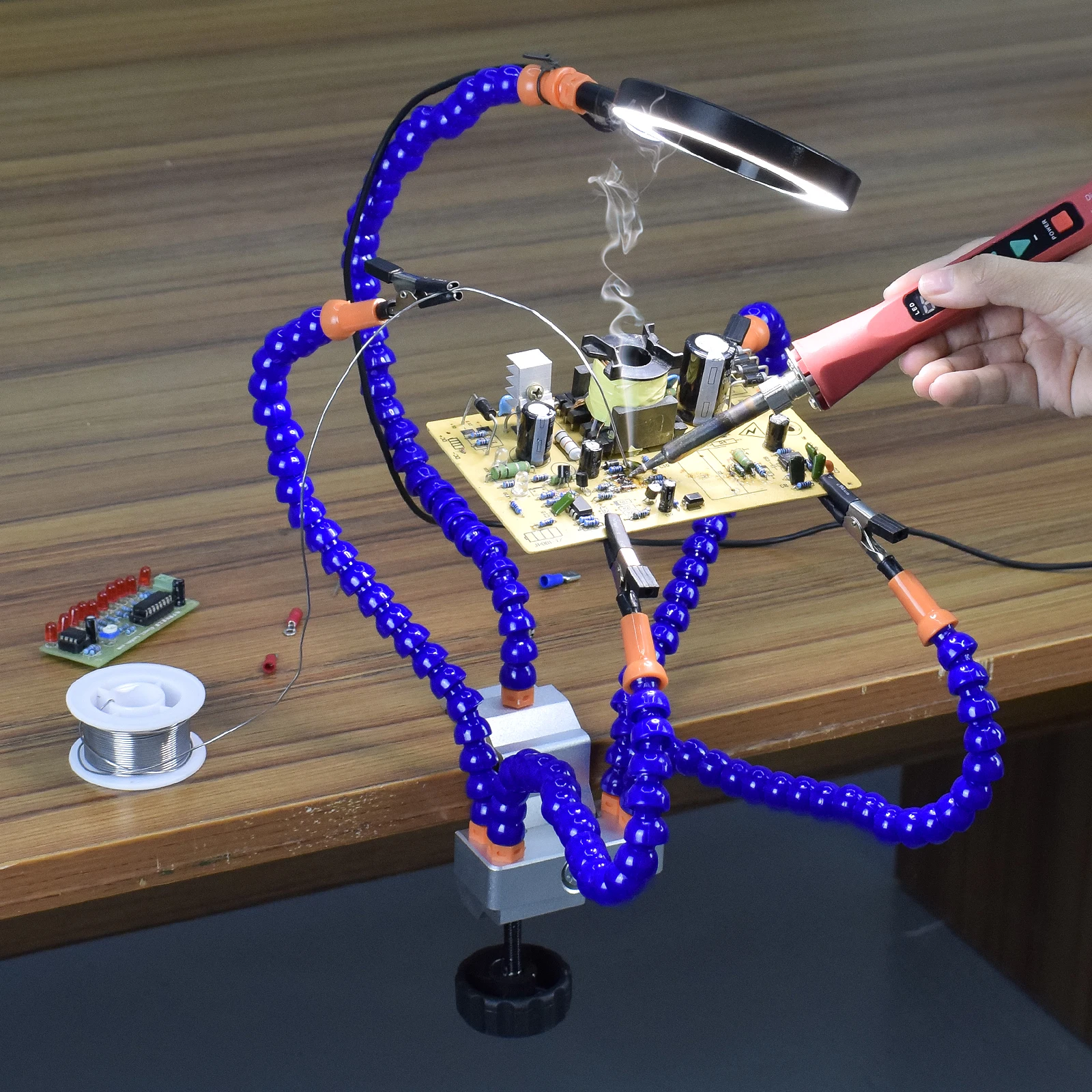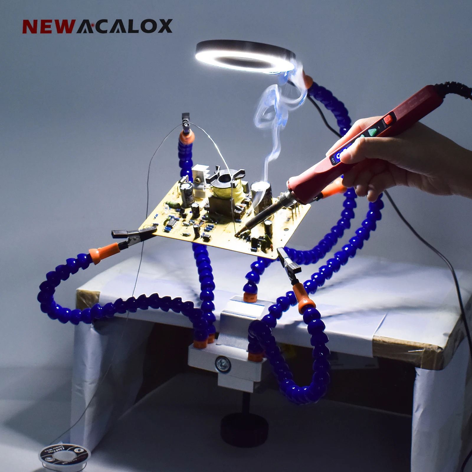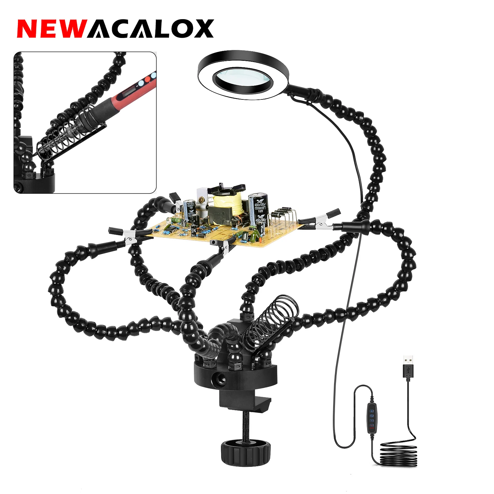 NEWACALOX Настольный зажим 3x увеличительное стекло с светодиодный лампой 5 шт. универсальная трубка PCB паяльные станции инструмент для ремонта