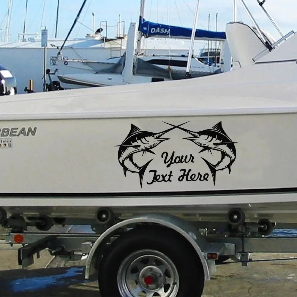 Наклейки с именем корабля, размер под заказ, наклейка для кузова лодки, стильный декор для капота двигателя, рыбалка марлина, декоративные наклейки для лодки