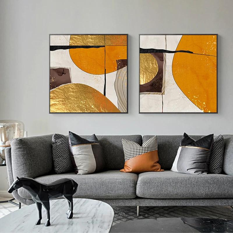 Современная Абстрактная живопись квадратная холст настенное Искусство Золотой роскошный интерьер Декор плакаты на стену Лофт картины для интерьера