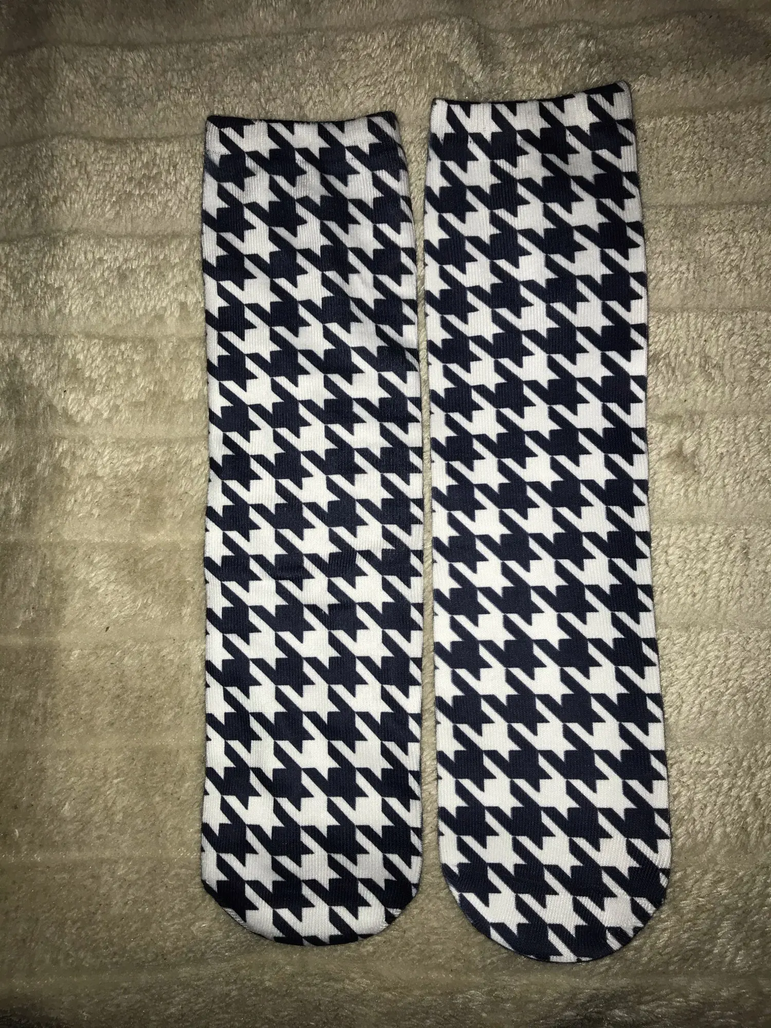 Носочки, они же гольфы, оказались чисто синтетическими и рисунок распрощается, когда надеваешь. Ну так, на троечку…