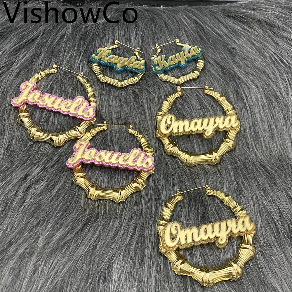 Женские серьги с бамбуковыми вставками VishowCo, серьги в стиле хип-хоп, акриловые серьги-кольца, персонализированные золотые подарочные серьги, Прямая поставка