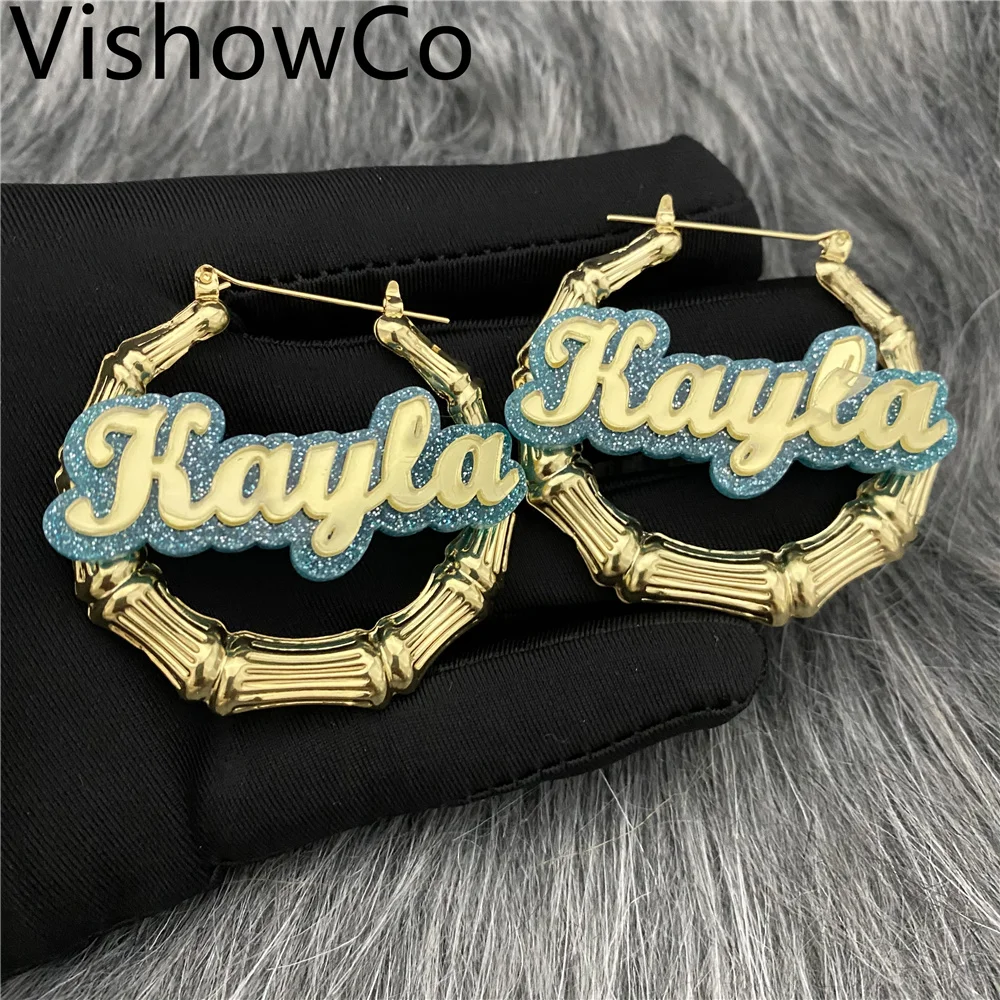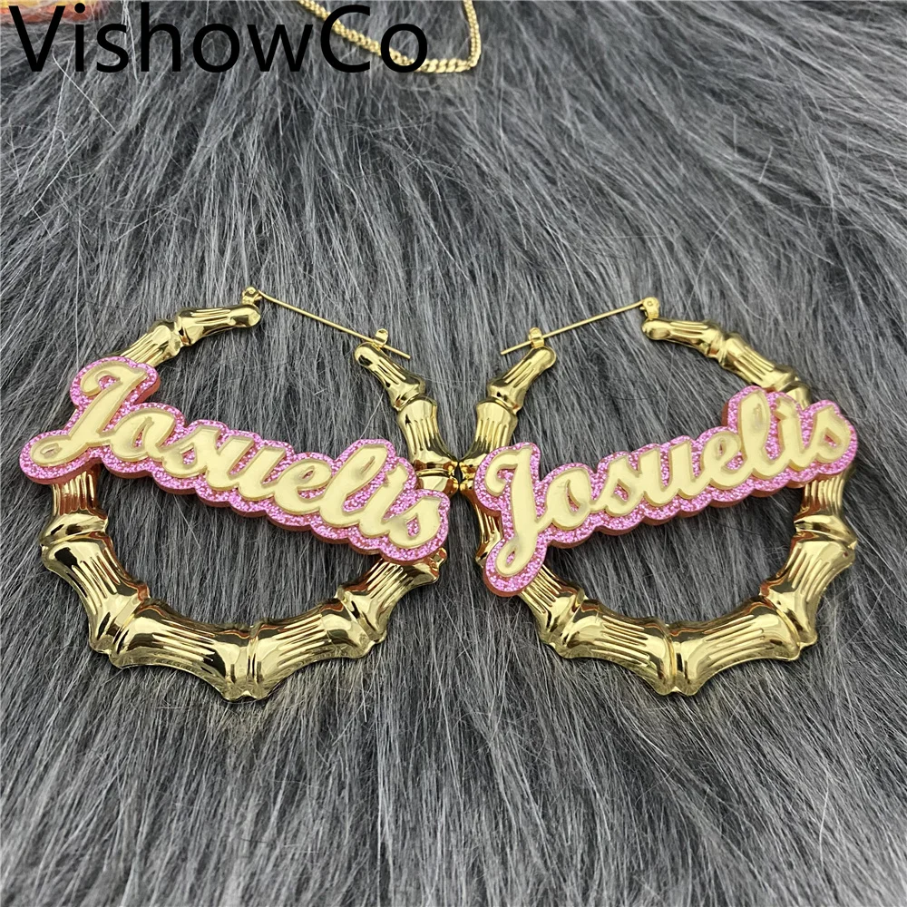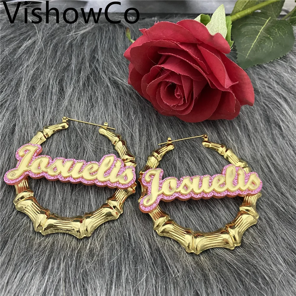 Серьги с именем на заказ VishowCo, акриловые серьги из нержавеющей ...