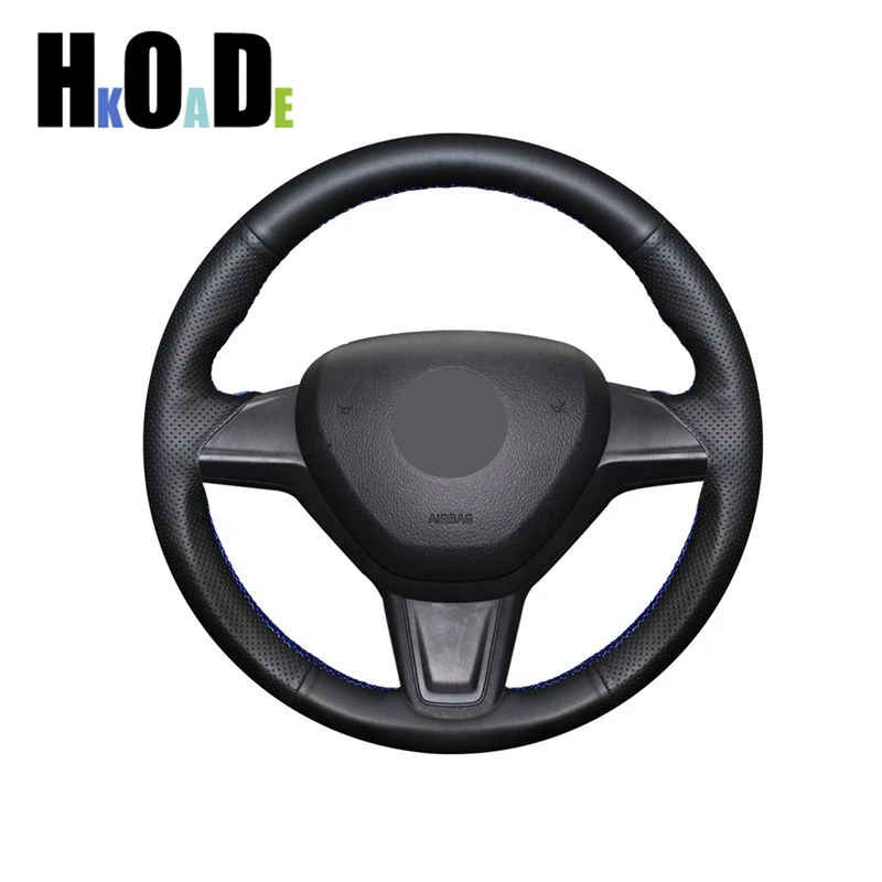Черный чехол рулевого колеса автомобиля из натуральной кожи ручной работы для Skoda Yeti 2014 2015 2016 Rapid 2015