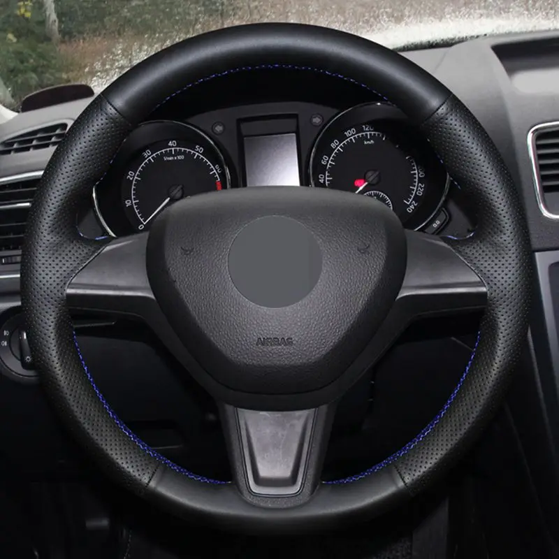 DIY Ручная прошитая черная крышка рулевого колеса из искусственной ...