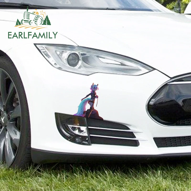 Пушистые автомобильные наклейки EARLFAMILY, 13 см х 11,3 см, для лисы, холодильника, кондиционера, водостойкие наклейки на бампер, окна
